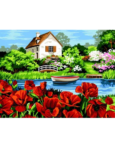 Canevas : 50x65 cm, Le lac aux coquelicots
