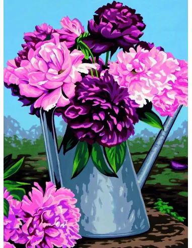 Canevas : 40x50 cm, Arrosoir aux pivoines -