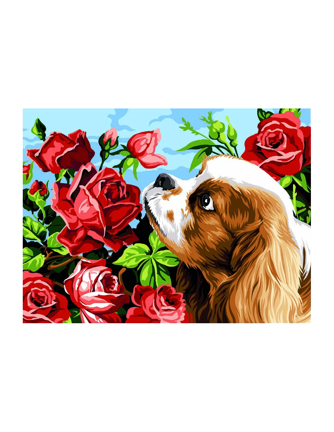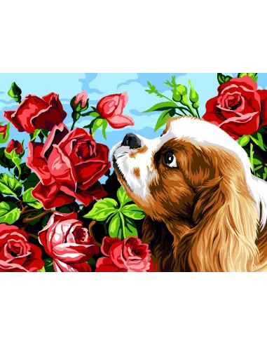 Canevas : 40x50 cm, King Charles et les roses