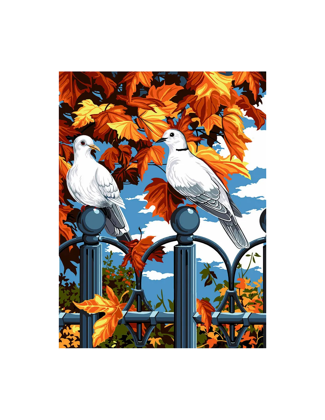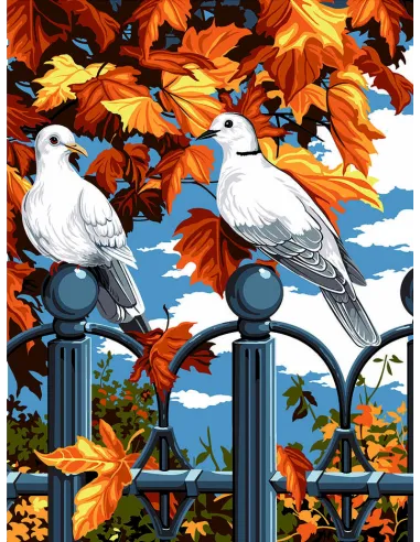 Canevas : 40x50 cm, automne et fer forge