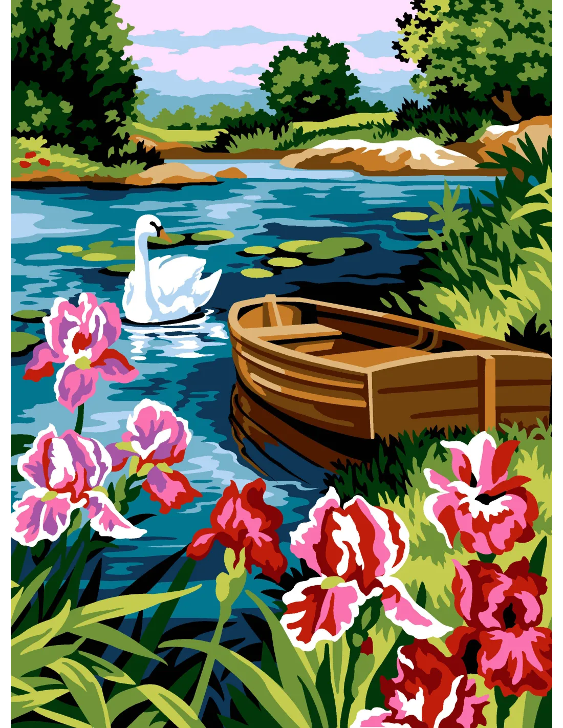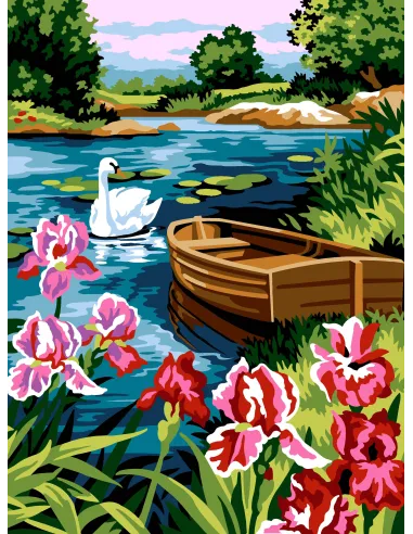 Canevas : 40x50 cm, N20- les iris du lac- canevas