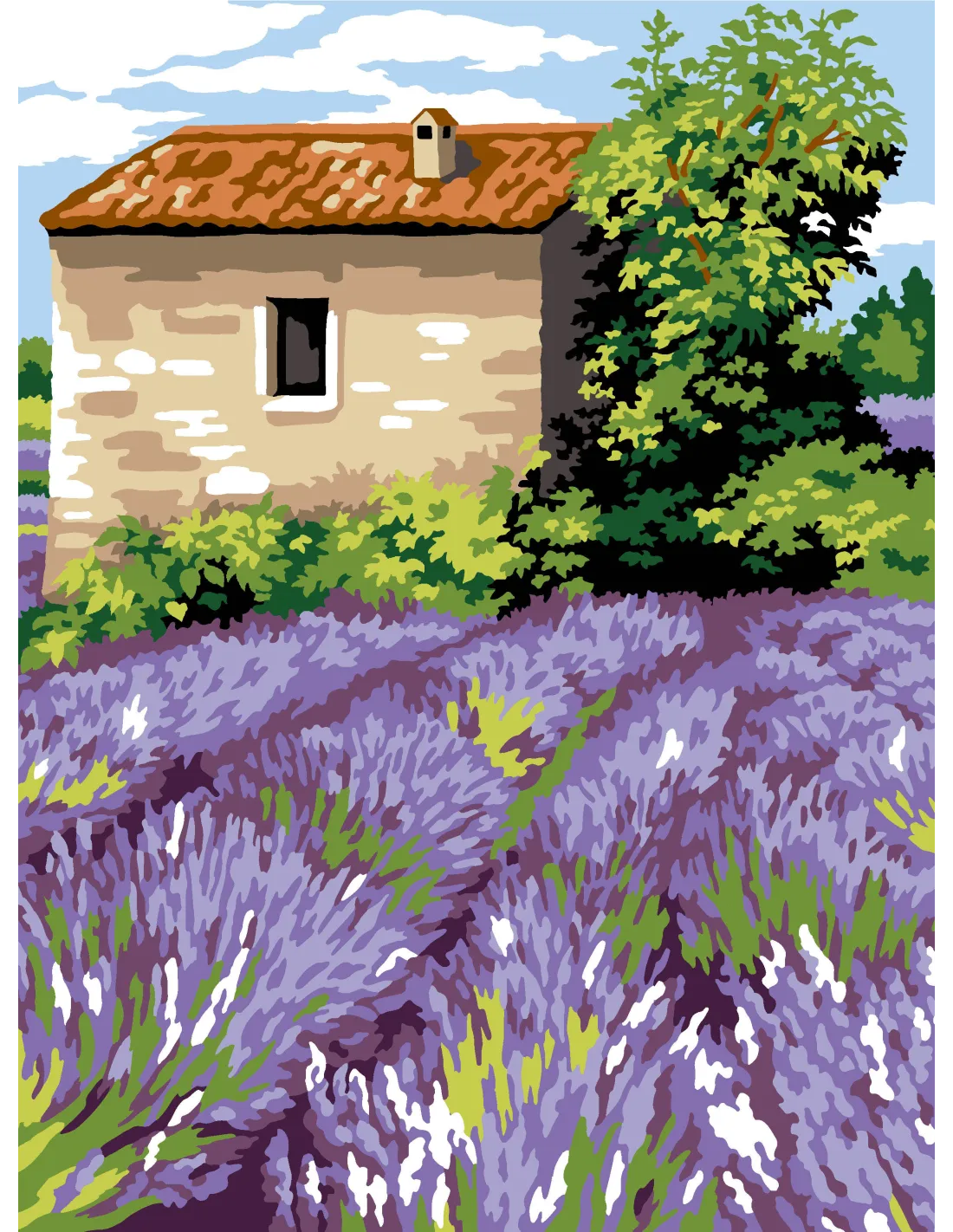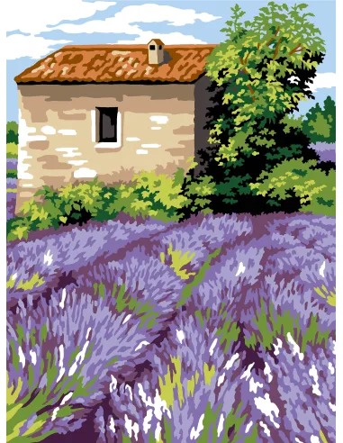 Canevas : 40x50 cm, N22 - la cabane aux lavandes