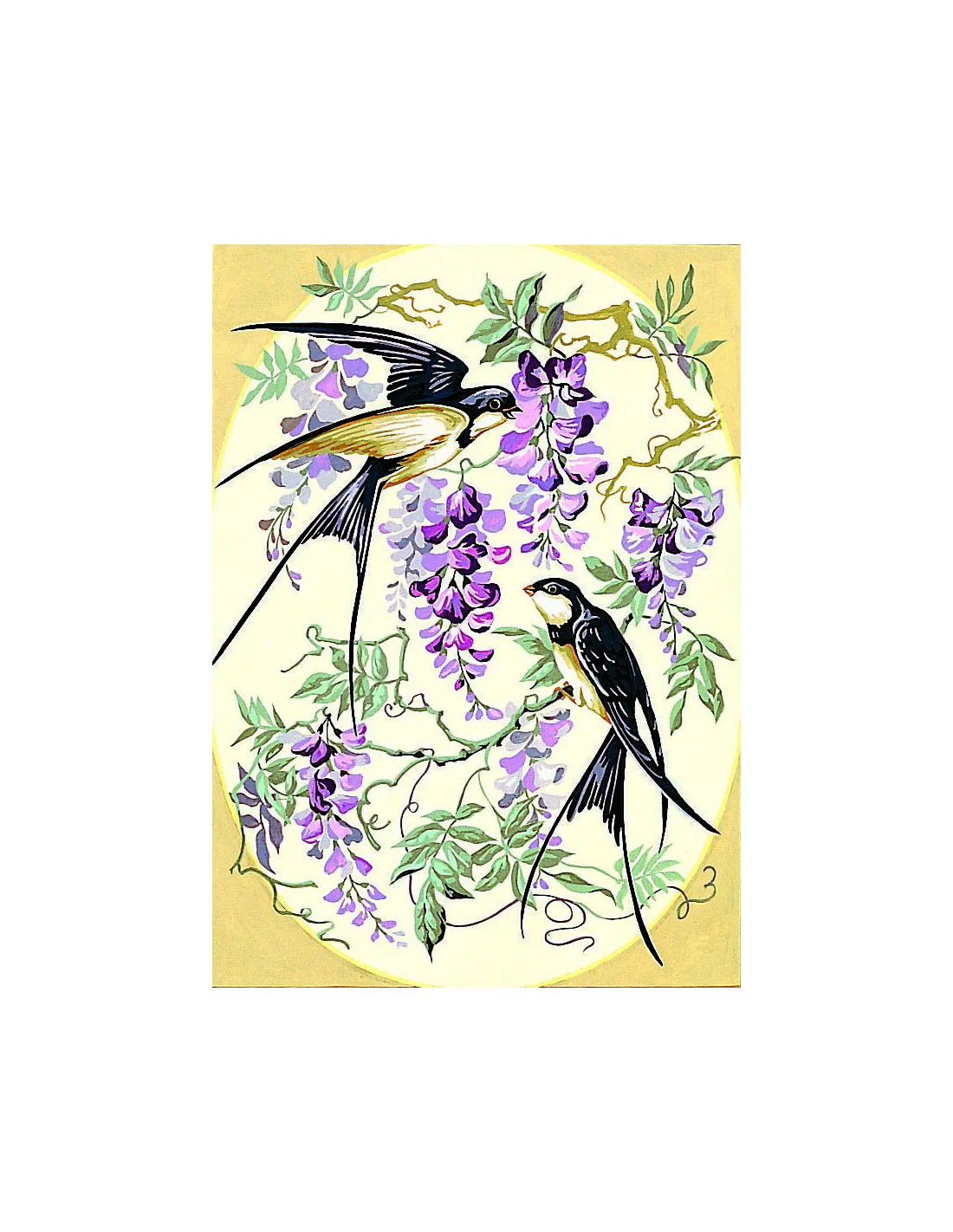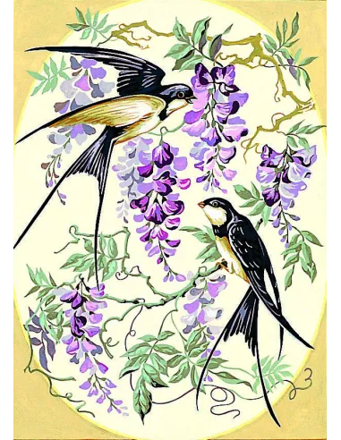 Canevas : 45x60 cm, hirondelles & gly.
