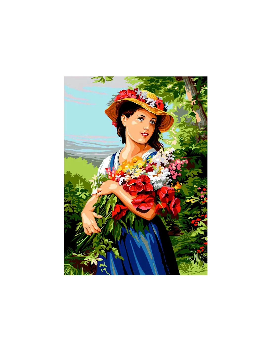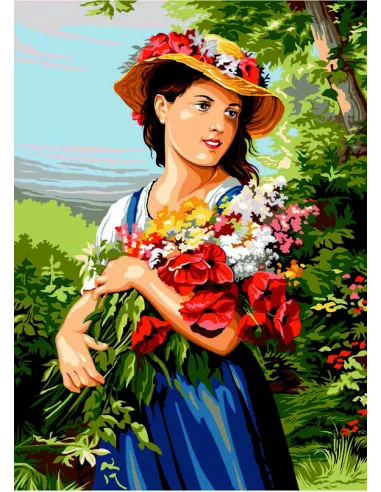 Canevas : 45x60 cm, La jeune fille au bouquet (Fritz Zuber)