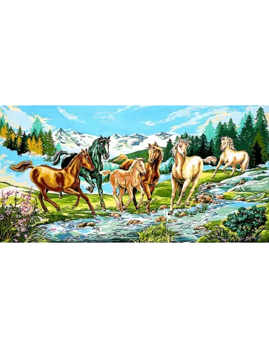 Canevas : 65x120 cm, cavalcade a l'eau vive