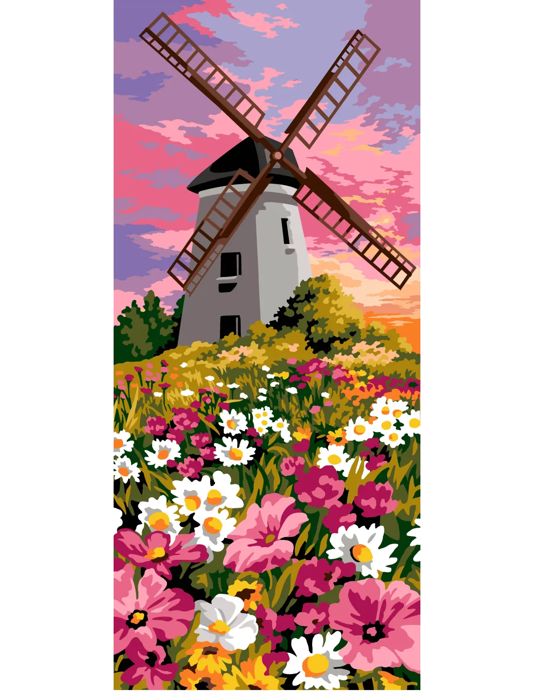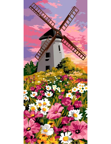 Canevas : 70x40 cm, N23 - le moulin aux fleurs