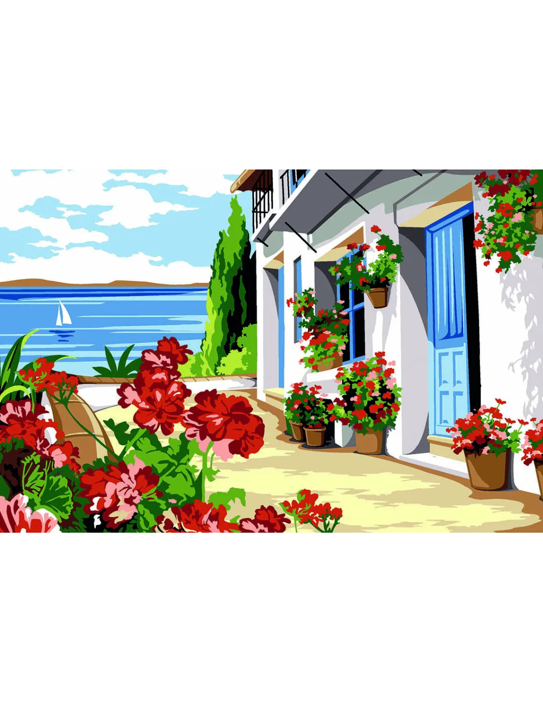 Canevas : 30x40 cm, terrasse fleurie