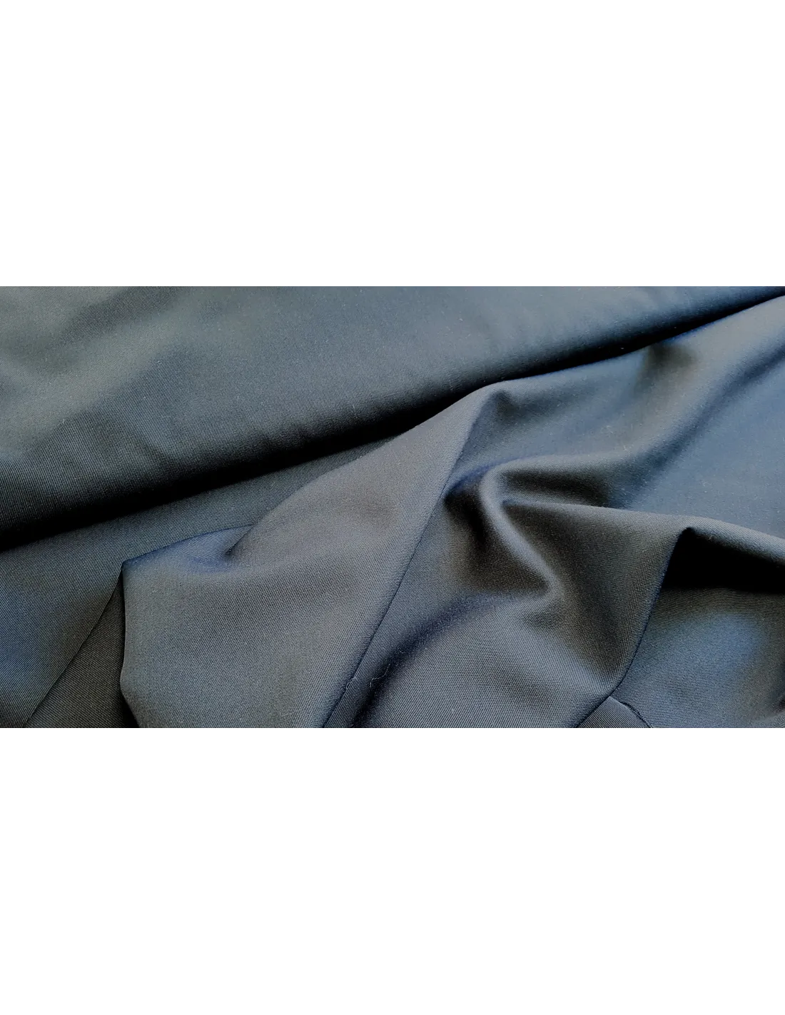 Beau tissu gabardine uni marine foncé. Ce tissu lourd et souple convient parfaitement pour la confection de pantalons, vestes et jupes tailleur.