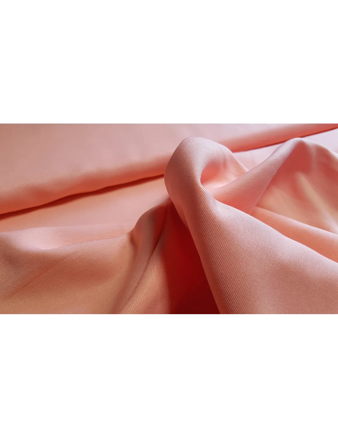 Beau tissu style toile mélangé viscose et polyester rose saumon. Ce tissu de qualité possède une bonne fluidité pour la confection de pantalons, vestes et jupes.