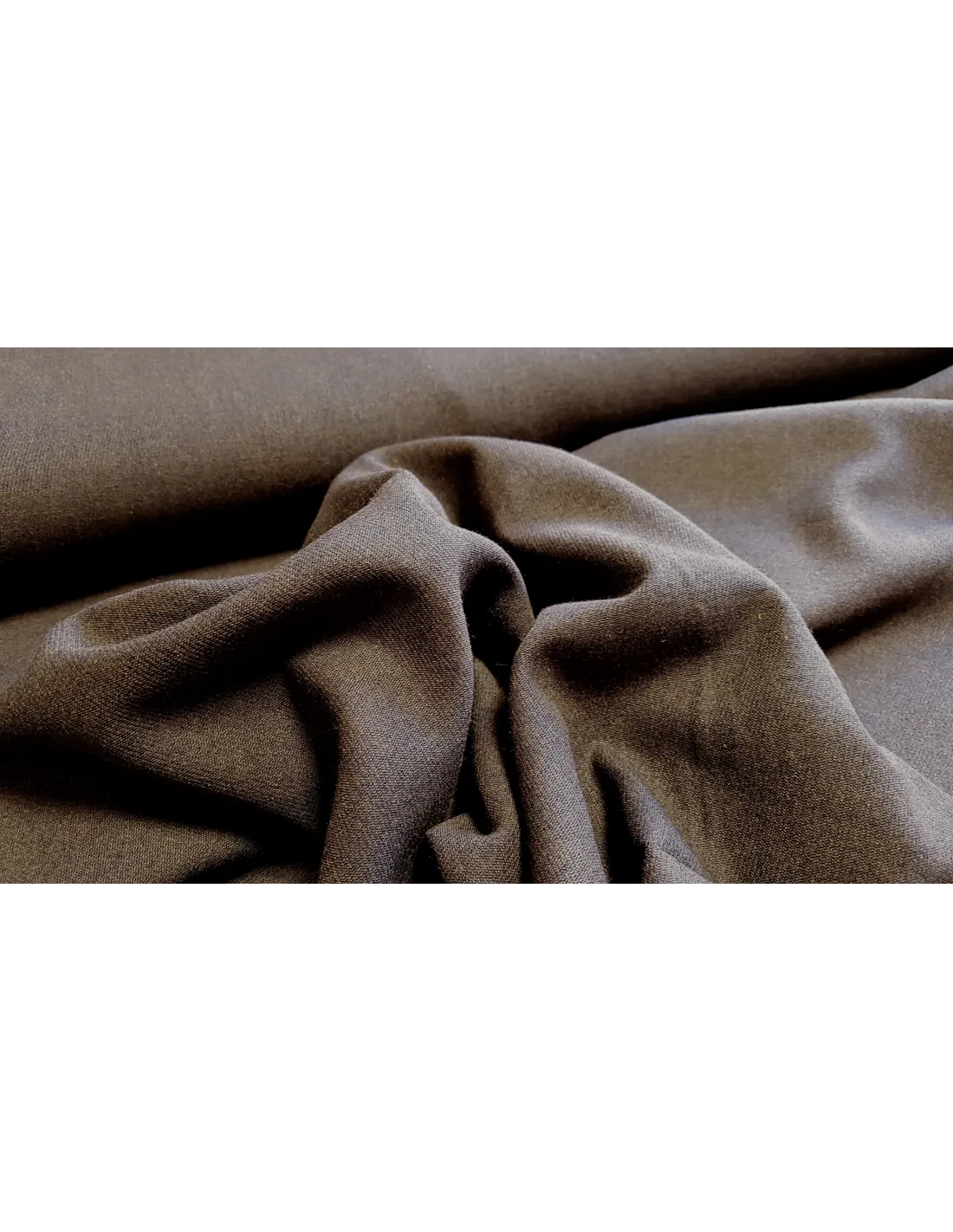 Beau tissu gabardine uni marron. Ce tissu lourd et souple convient parfaitement pour la confection de pantalons, vestes et jupes tailleur.