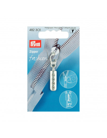 La gamme de Prym offre comme point fort visuel particulier une large gamme de tirettes à la mode en divers matériaux. Comme le cœur rouge, le crâne, la tirette argentée avec strass ou l’anneau simple : Vous trouverez ici le design adapté à chaque goût pour rehausser et personnaliser vos vêtements et sacs préférés. Toutes les tirettes Fashion disposent d'un mousqueton robuste qui permet un remplacement facile. Elles sont disponibles par pièce sur la carte blister.