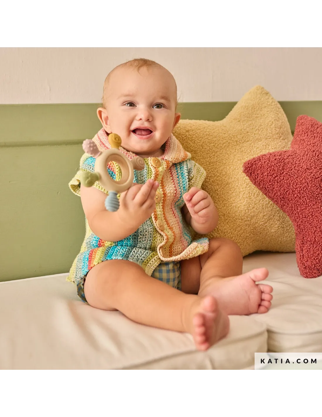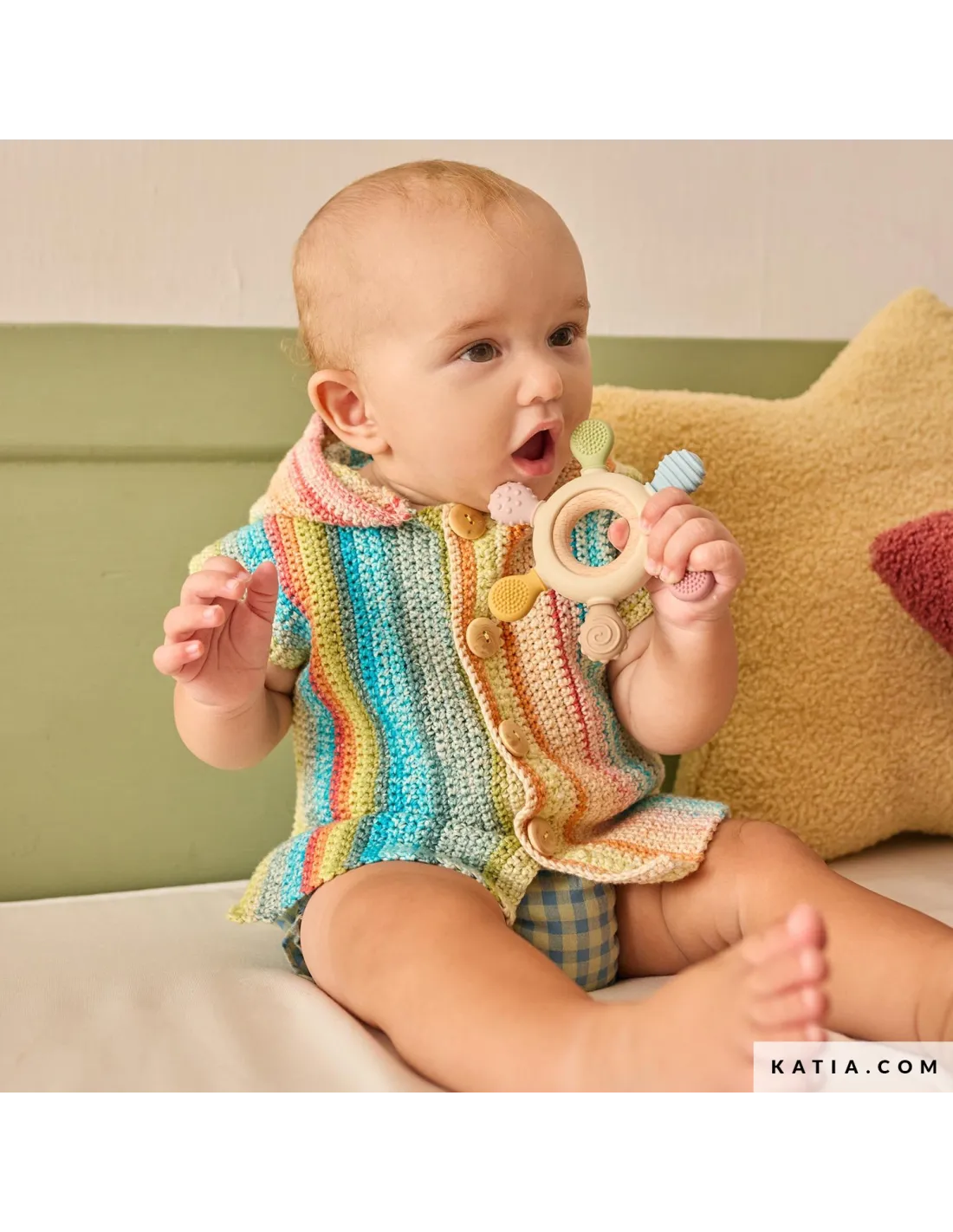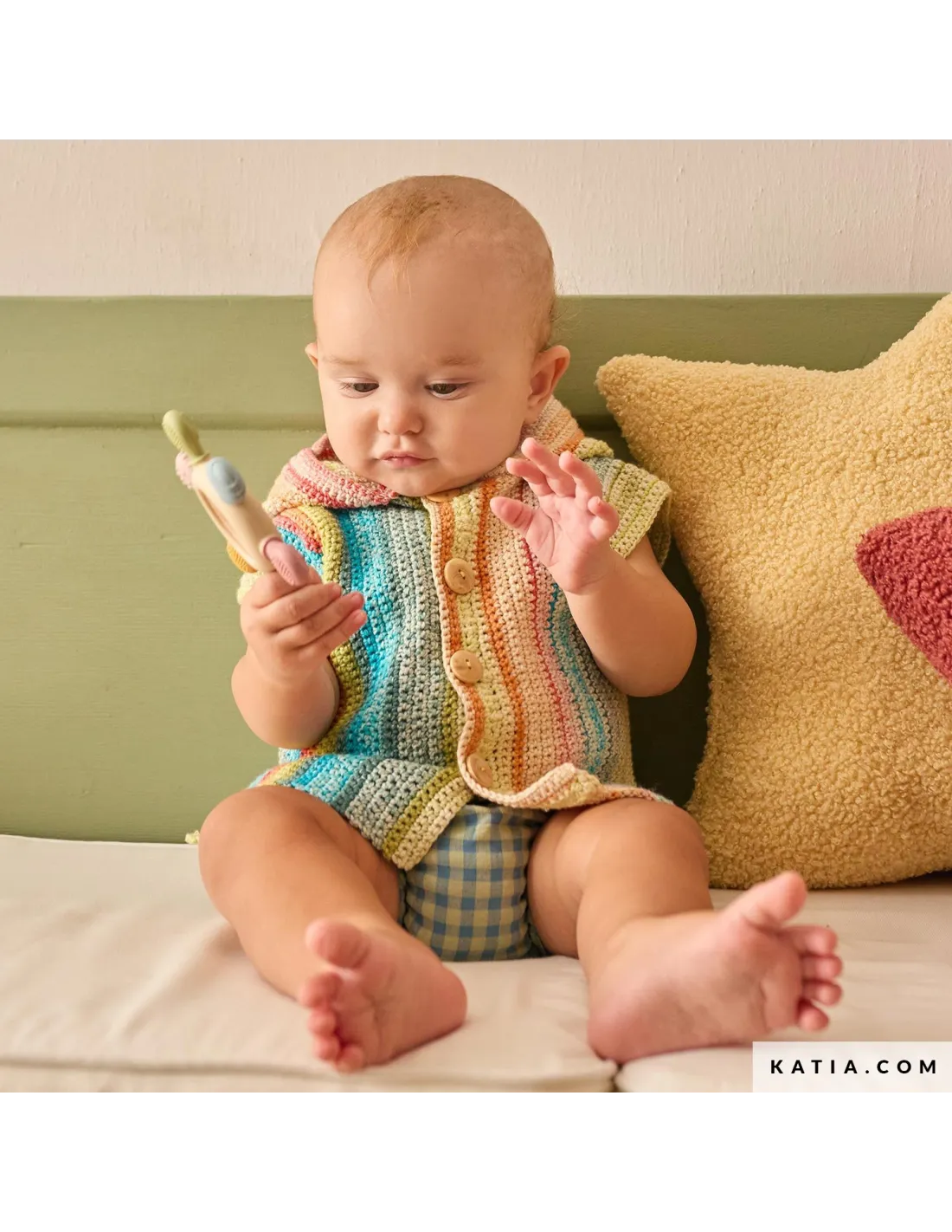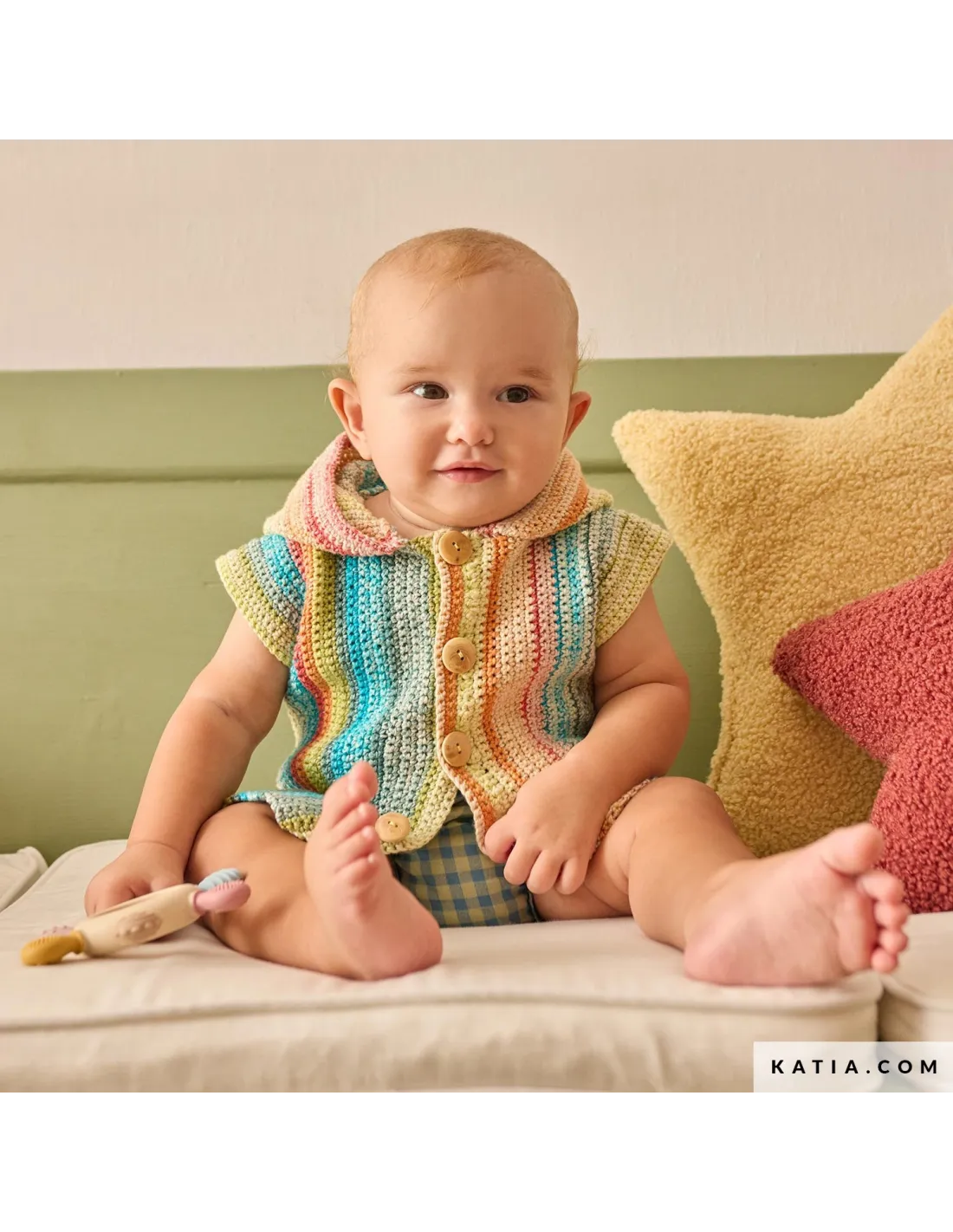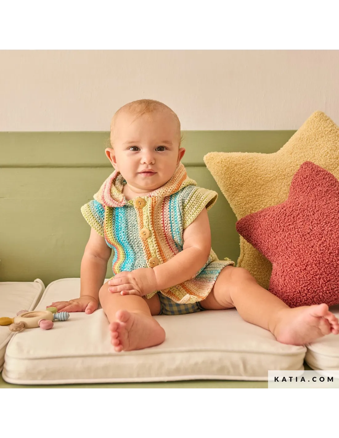 Remplissez la garde-robe estivale de votre bébé de douceur avec Katia Layette 116, une collection actuelle et délicate de 35 modèles à tricoter et à crocheter pour les tout-petits. Découvrez des grenouillères, des brassières, des pulls et des accessoires faciles à porter, pensés pour chaque moment de la journée. Tricotez et crochetez avec des fibres naturelles comme Katia Fair Cotton Stretch, Concept Puro Cotone ou Concept Cotton-Cashmere dans des tons doux et des combinaisons fraîches. Une proposition à la fois pratique et pleine d’amour, qui équilibre confort, style et tendresse. Créez en toute sérénité, savourez le processus créatif et transformez chaque projet en un souvenir fait main.