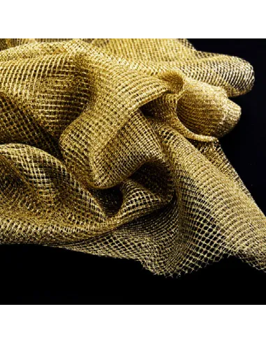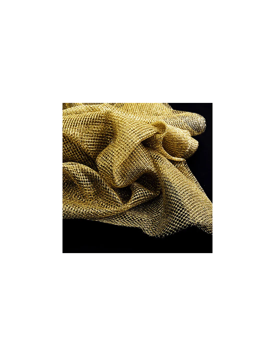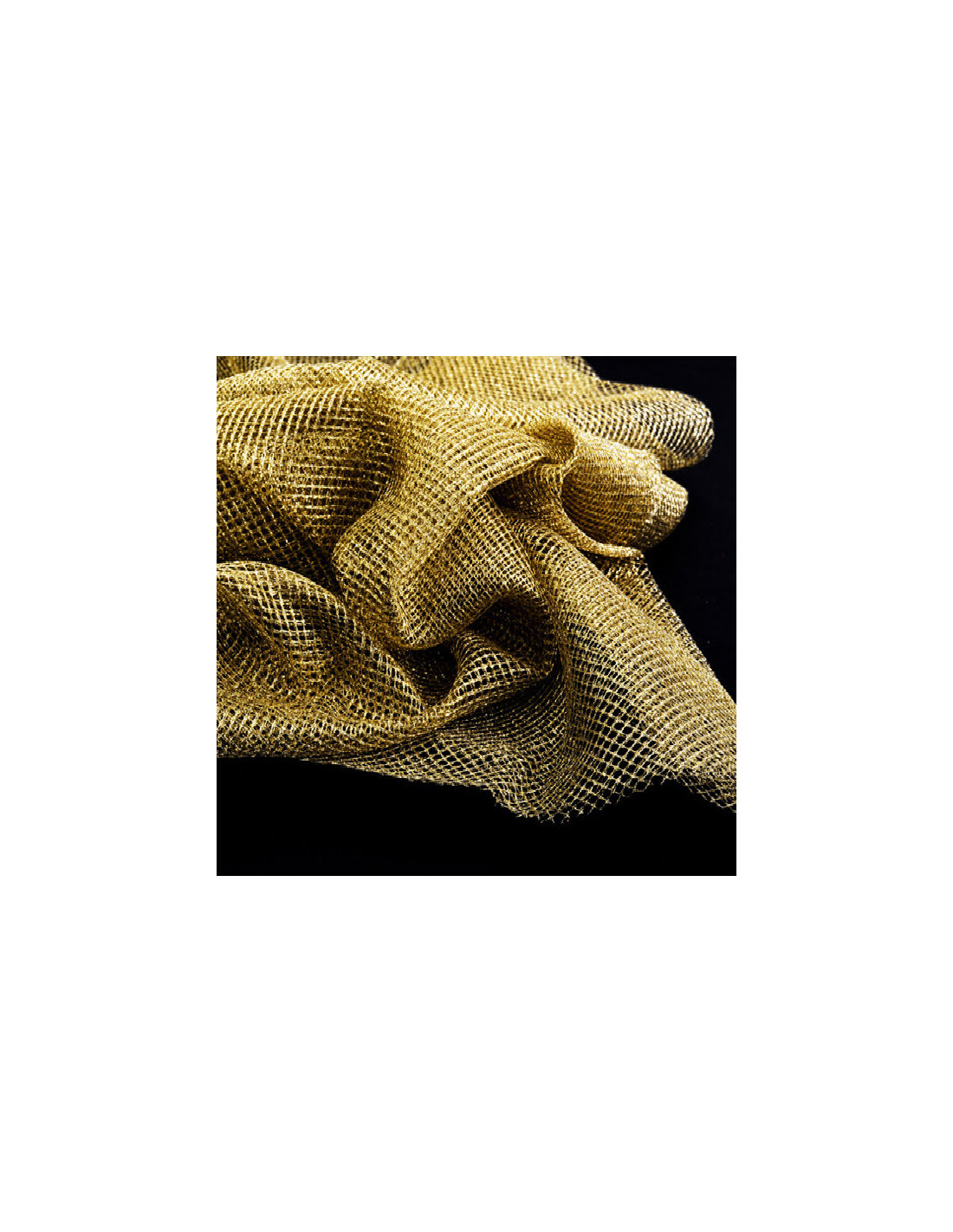 Tissu tulle métallique or, pour la confection de vêtements fantaisie comme les tutu, jupes, costumes ou encore des sacs a vrac.