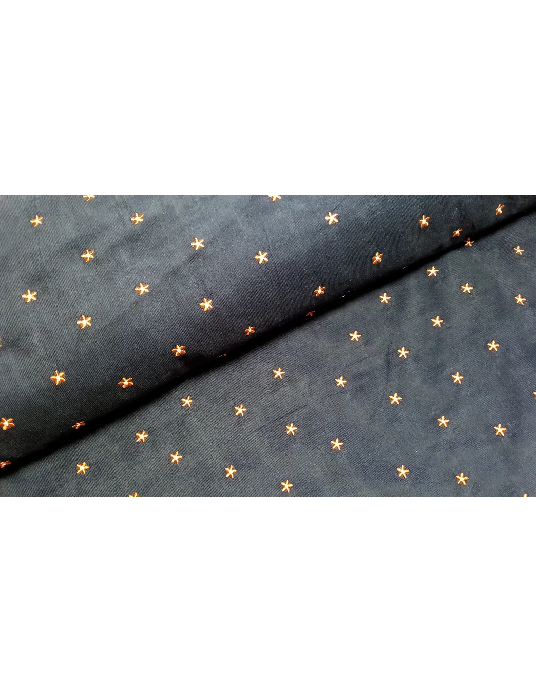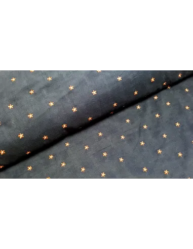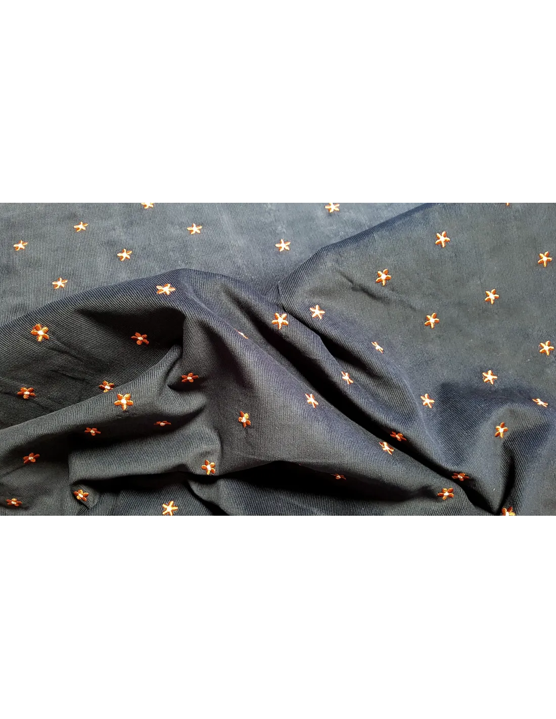 Beau velours milleraies à imprimés petites fleurs brodées roses sur fond bleu marine.