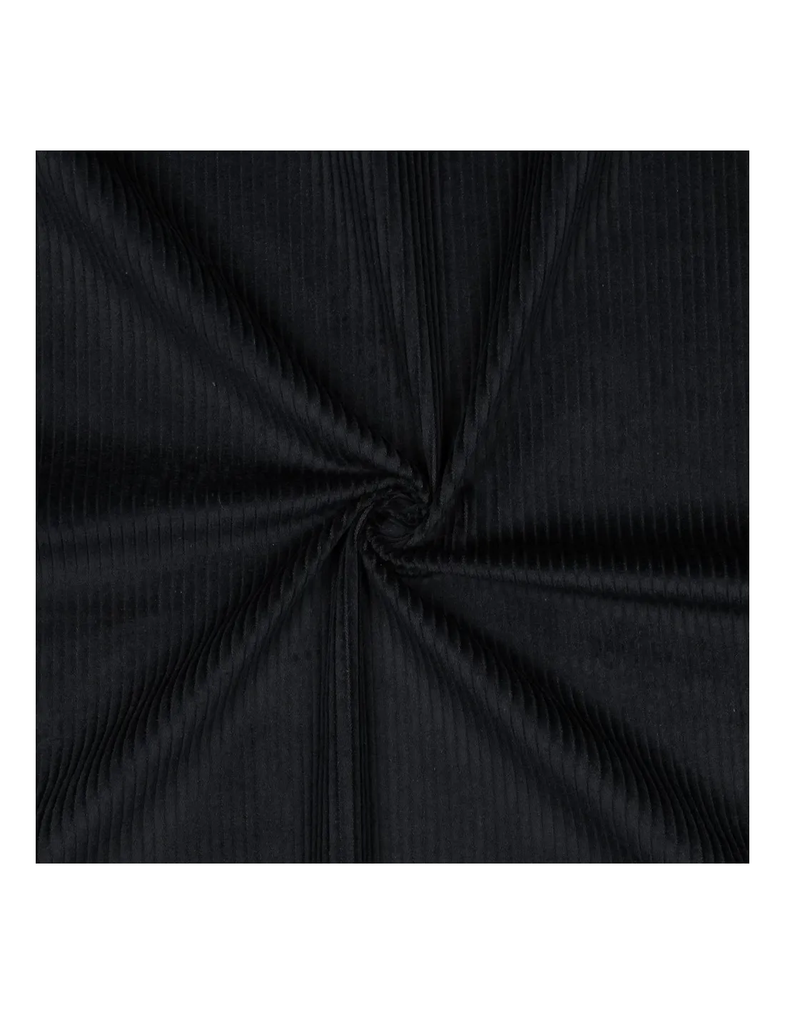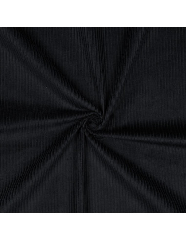 Le velours larges côtes uni est un tissu texturé reconnaissable à ses bandes de velours en relief, larges et douces, sur une couleur unie.