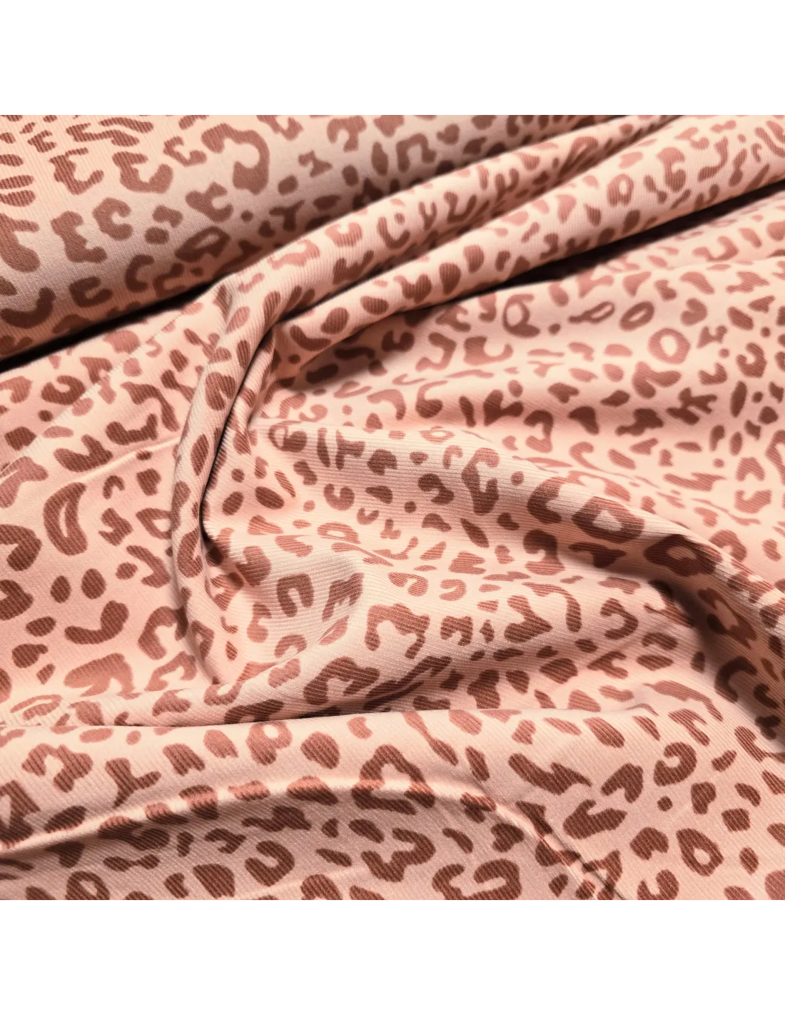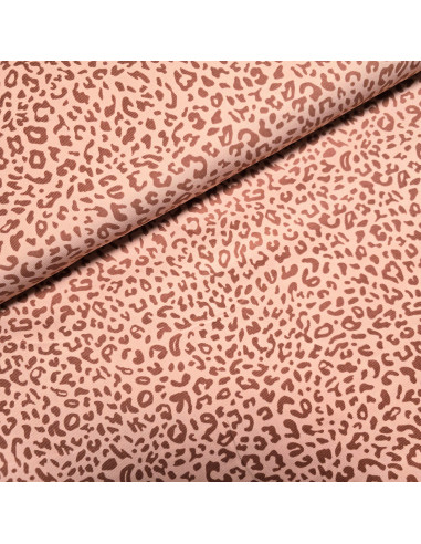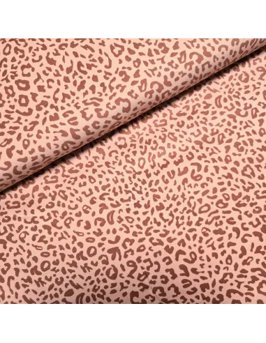 Velours milleraies peau de léopard dans les tons saumon. Ce tissu est parfait pour la confection de pantalons, robes,...
