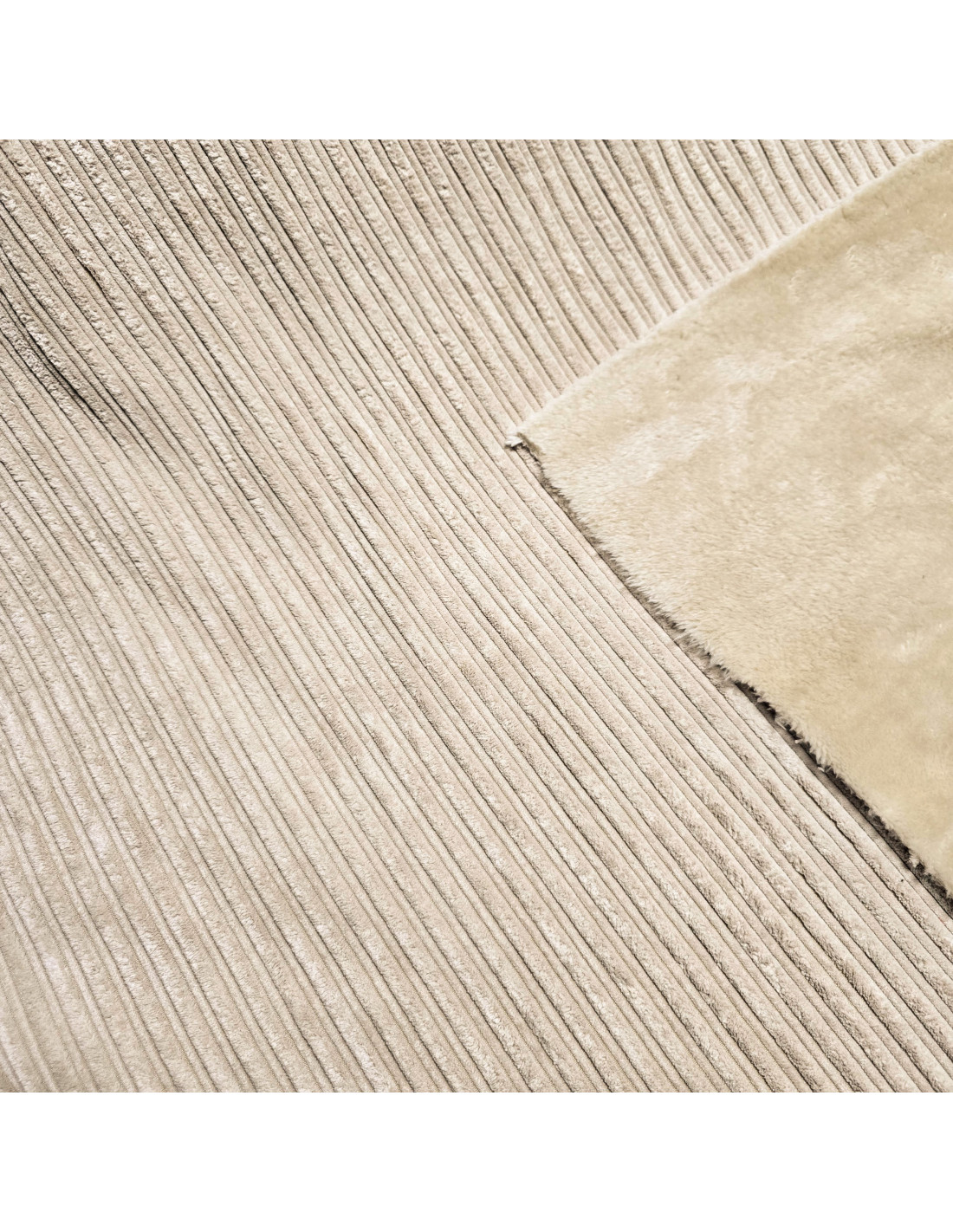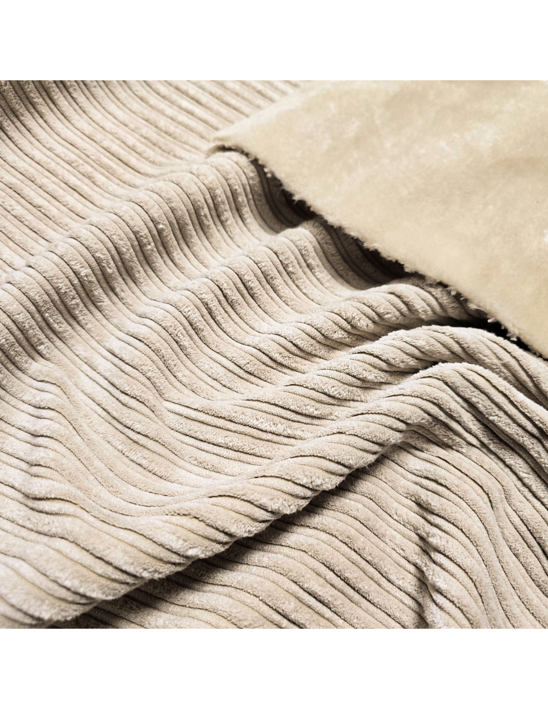 Velours larges cotes uni, envers fourrure écrue . Ce tissu est parfait pour la confection d'une veste ou d'un gilet chaud.