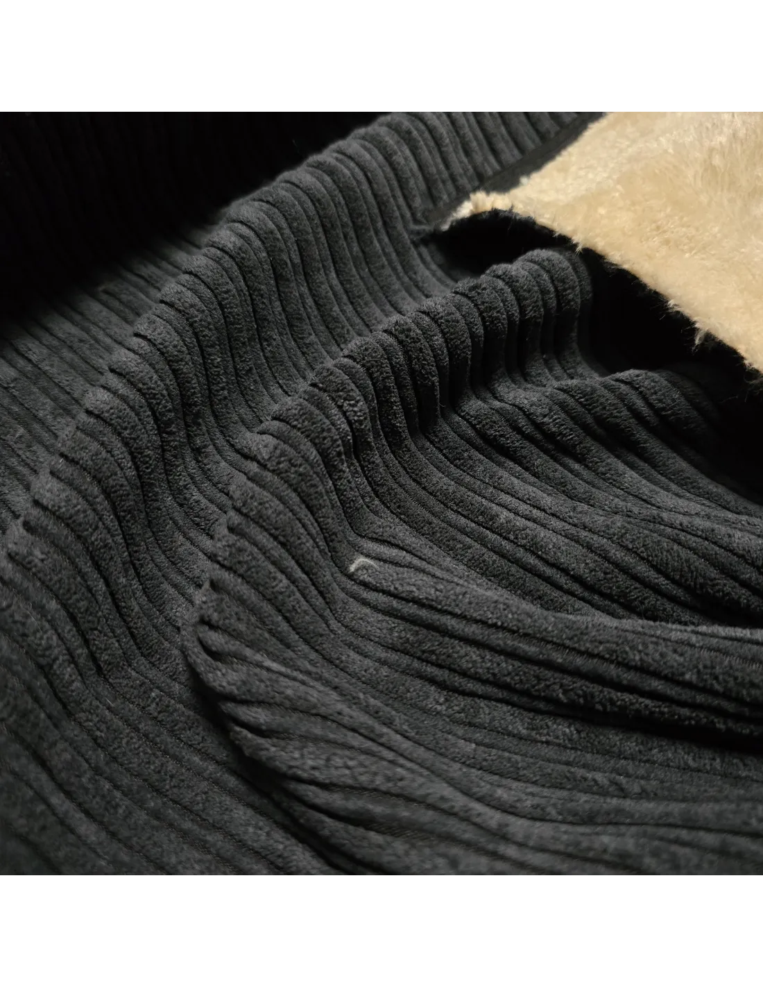 Velours larges côtes envers fourrure, noir / gris anthracite