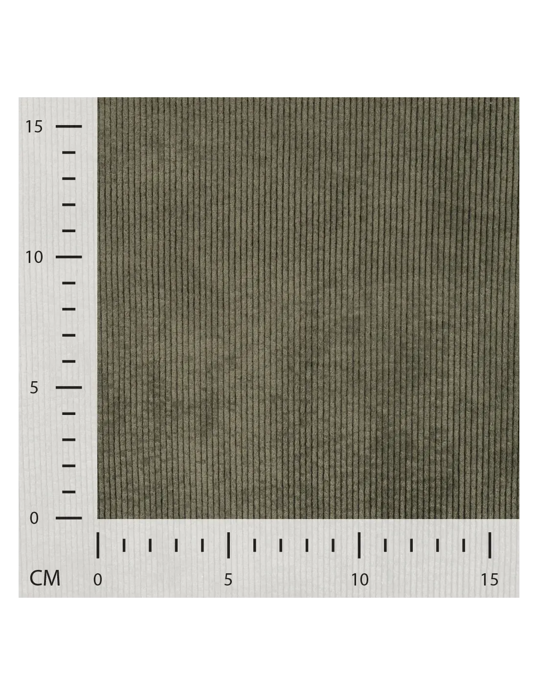 Ce velours côtelé lavé est une étoffe épaisse et souple, caractérisée par ses côtes moyennes et son fini doux, idéale pour la confection de vêtements structurés et confortables avec un aspect légèrement décontracté.