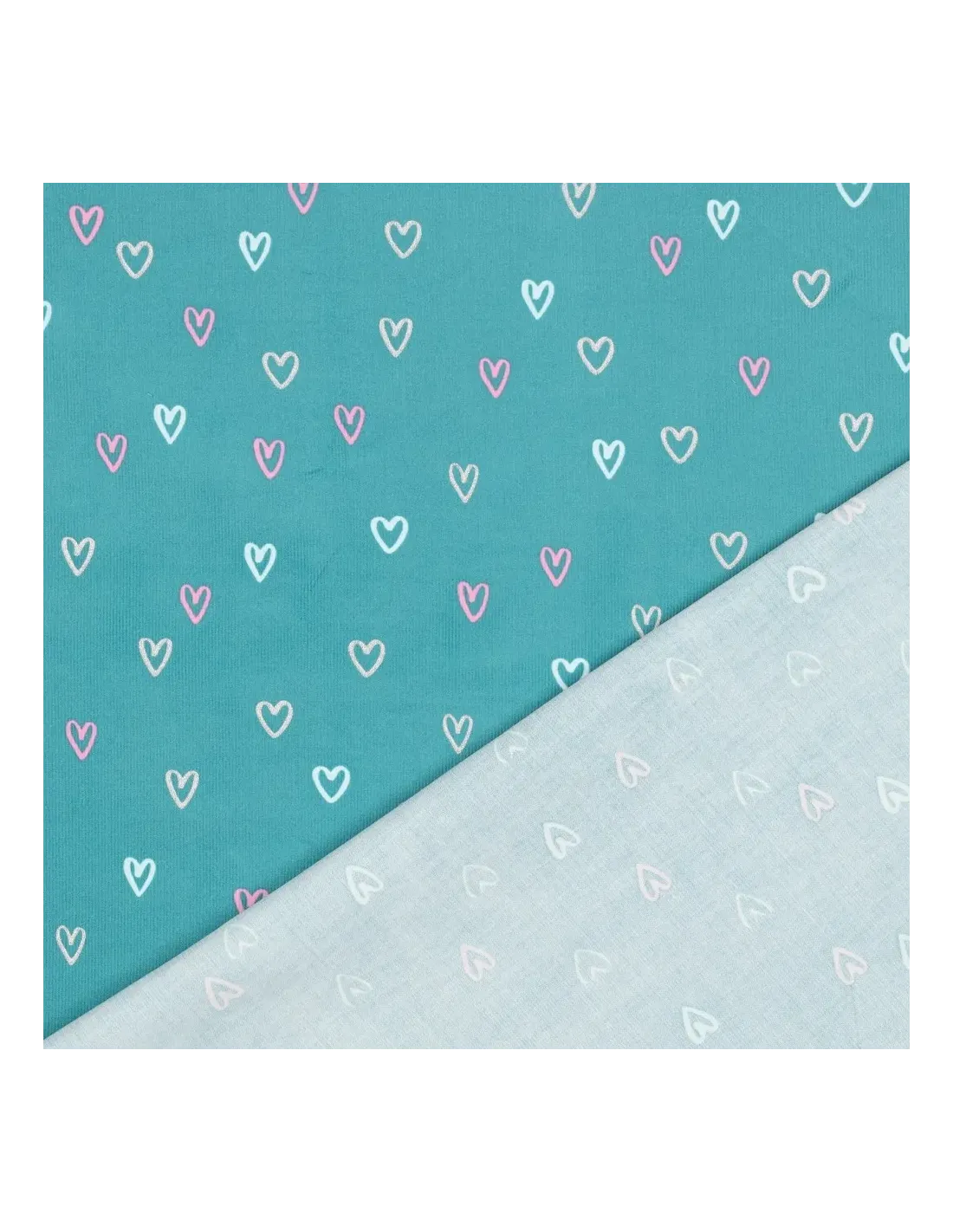 | Motif | Cœurs (Rose, Blanc, Gris Glitter sur fond Bleu Canard) |