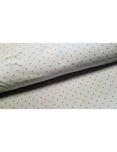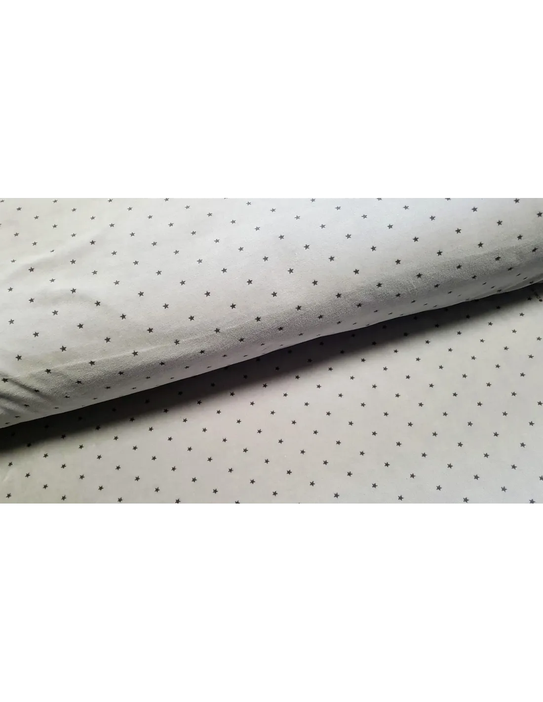 Tissu velours nicky petites étoiles noires sur fond gris. Ce tissu est très agréable au toucher, il est idéal pour la confection d'un pyjama