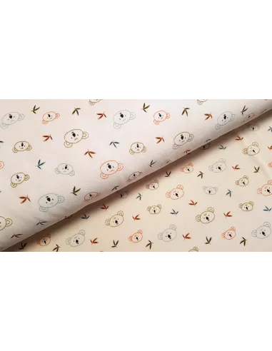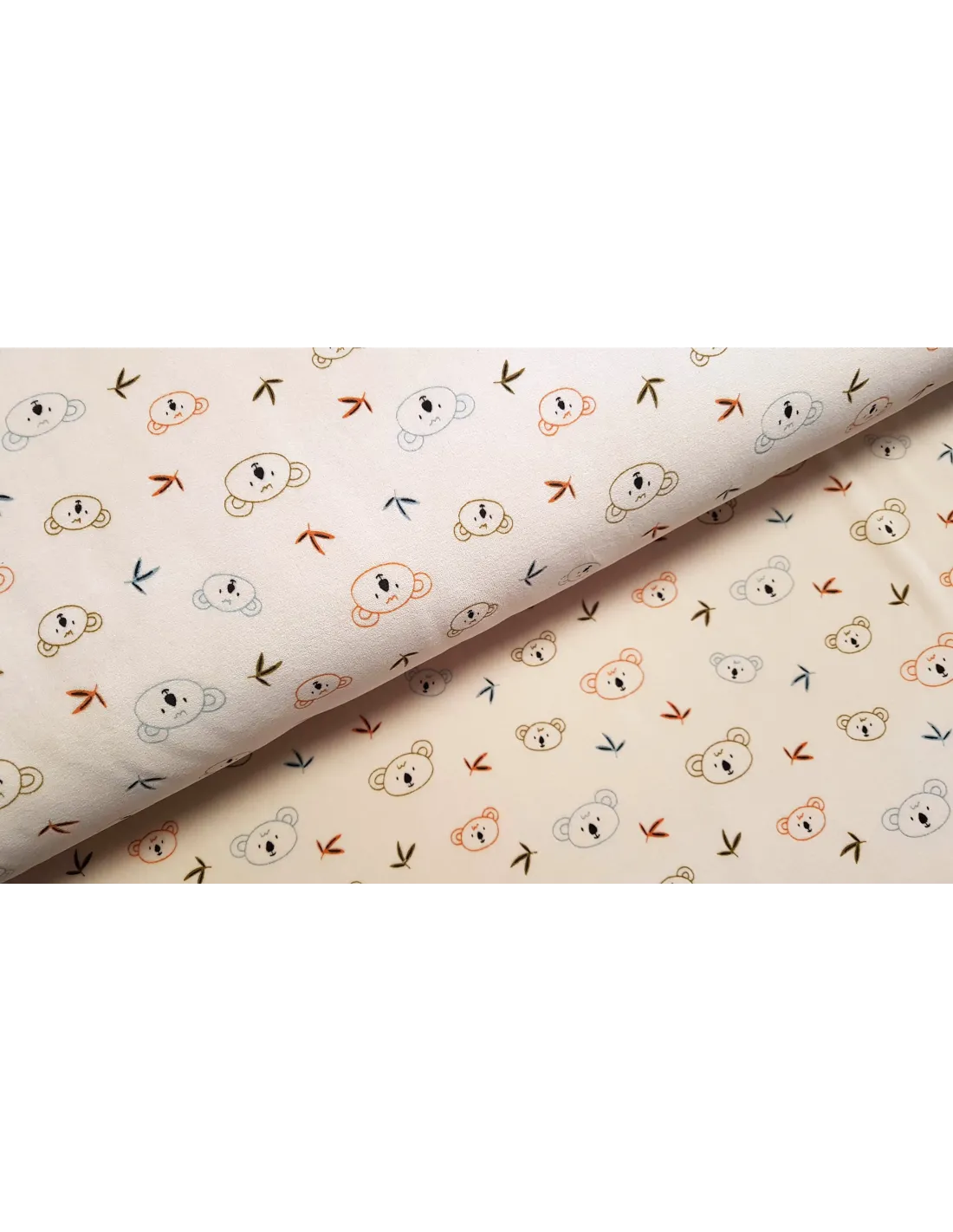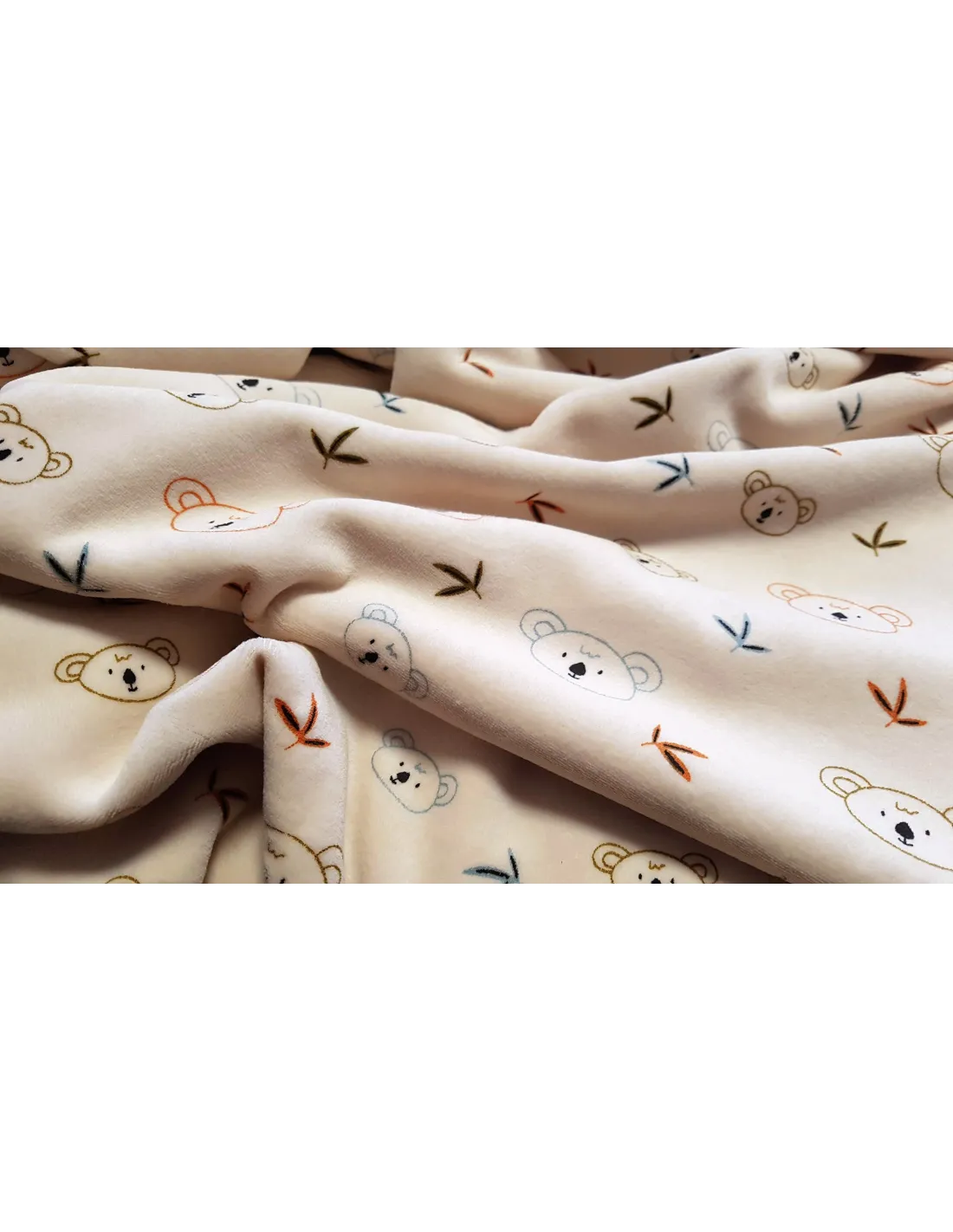 Tissu velours nicky aux petits oursons sur fond beige. Ce tissu est très agréable au toucher, il est idéal pour la confection d'un pyjama