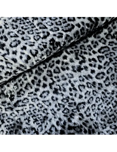 Velours imprimé panthère noire. Ce tissu est parfait pour la confection de pantalons, robes,...