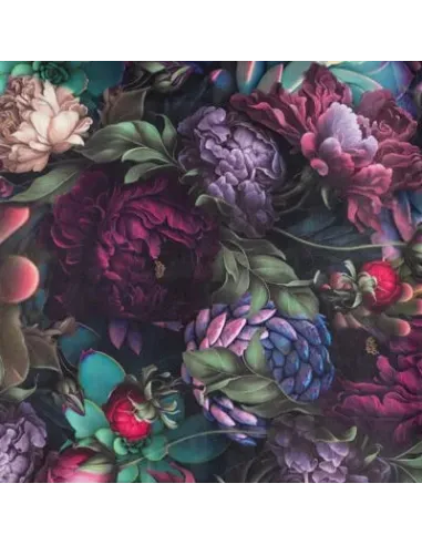 Velours impression digitale, fleurs. Ce tissu est parfait pour la confection de jupes, robes,... ou pour l'ameublement