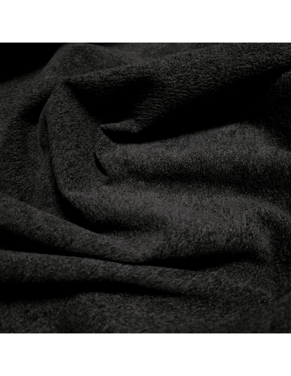 Velours uni mat, noir. Ce tissu doux peut être utilisé en ameublement pour recouvrir une chaise, pour des coussin ou des rideaux...