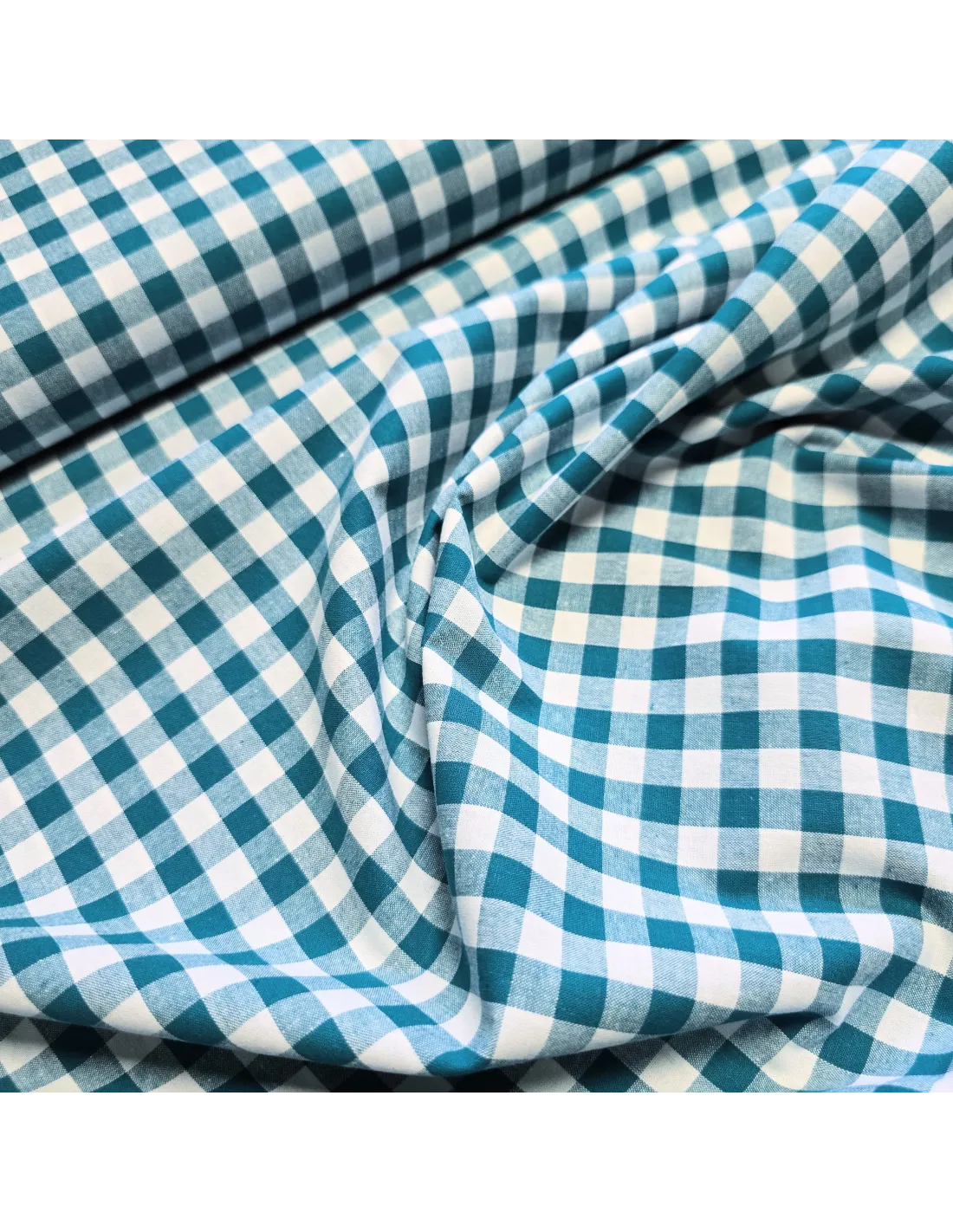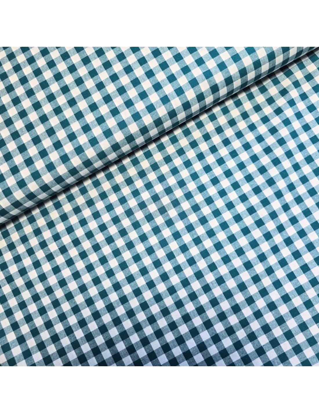 Coton vichy carreaux moyen (10x10mm) vert canard et blanc