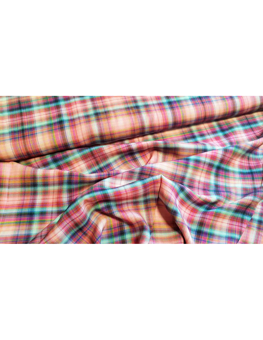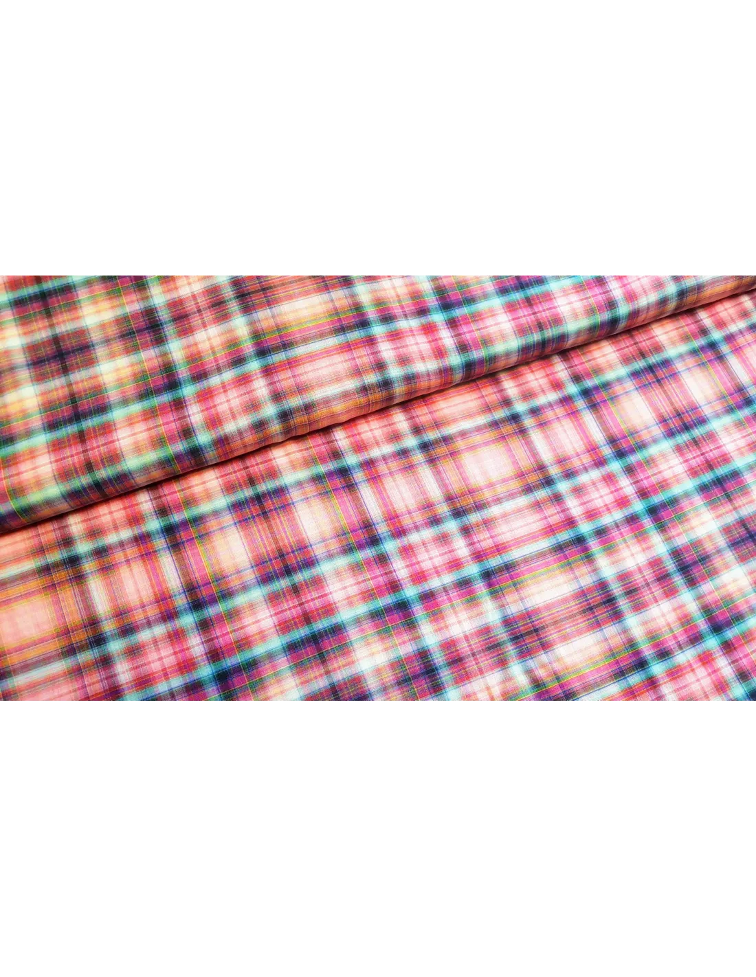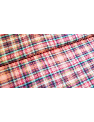 Joli tissu viscose à carreaux dans les tons de rose. Ce tissu léger est idéal pour la confection de vêtements d’été comme des robes...