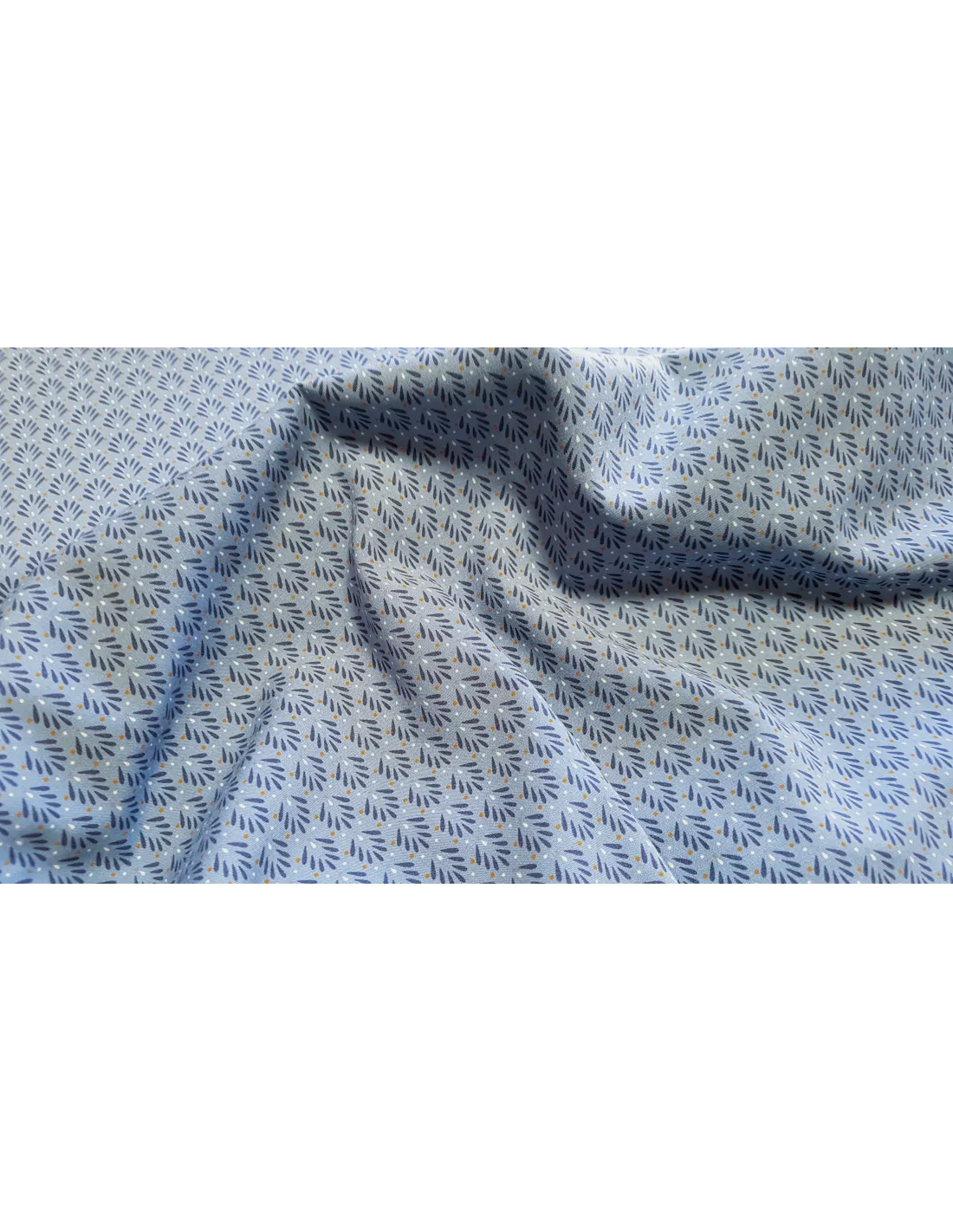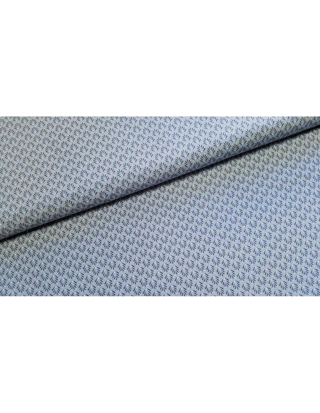 Joli tissu viscose stretch aux motifs feuilles sur fond bleu jeans. Ce tissu léger est idéal pour la confection de vêtements d'été comme des chemisiers…