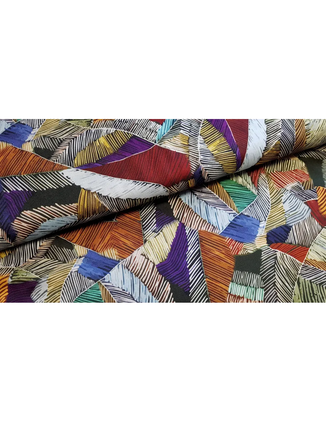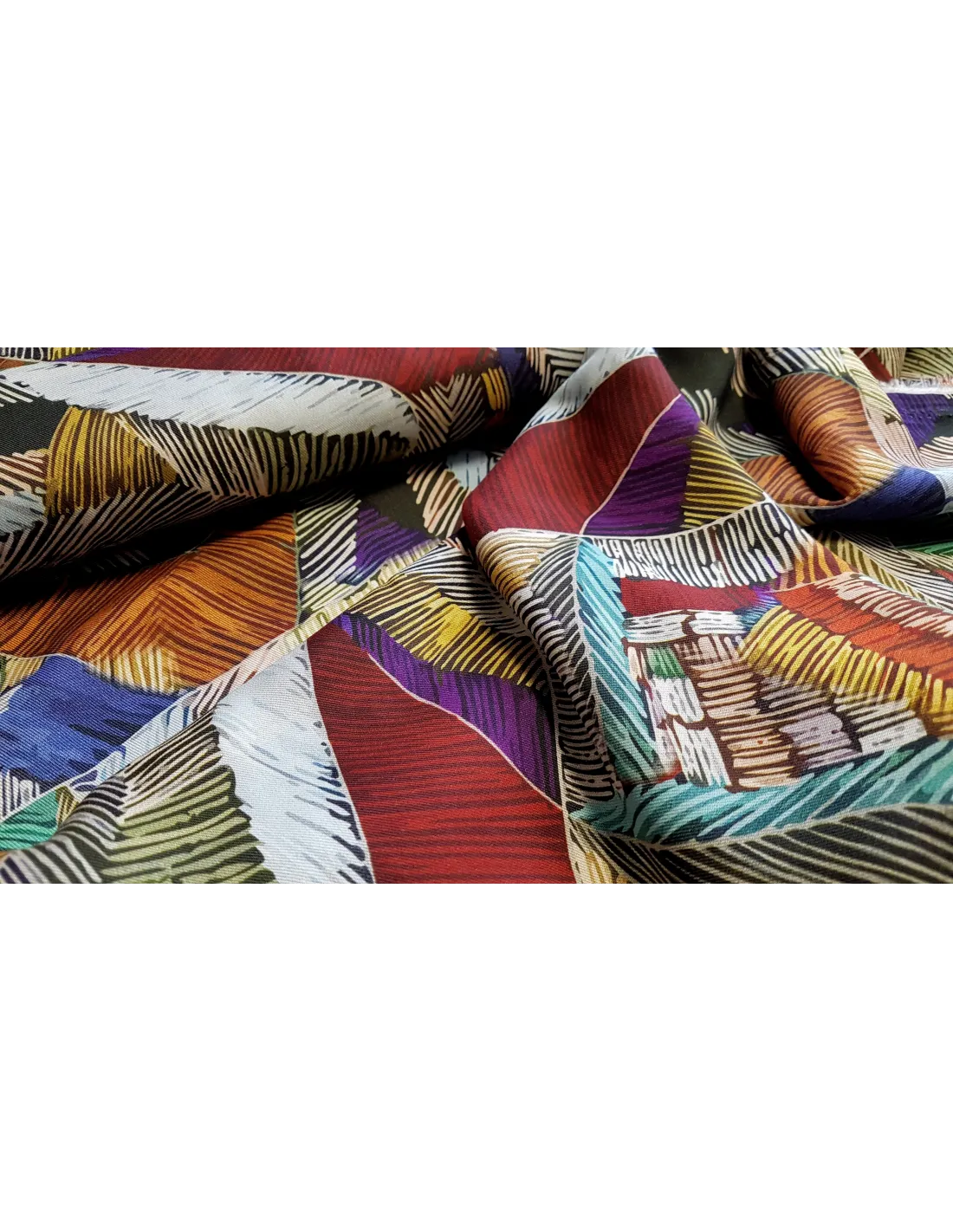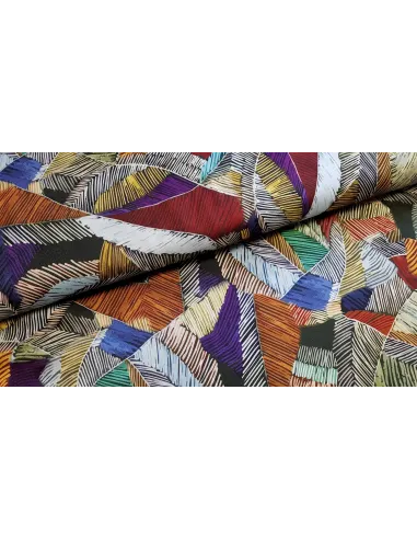 Joli twill viscose aux motifs graphiques colorés. Ce tissu est un peu plus épais qu'une viscose simple, ce qui lui donne un peu plus de tenue. Parfait pour le confection de vêtements d'été.