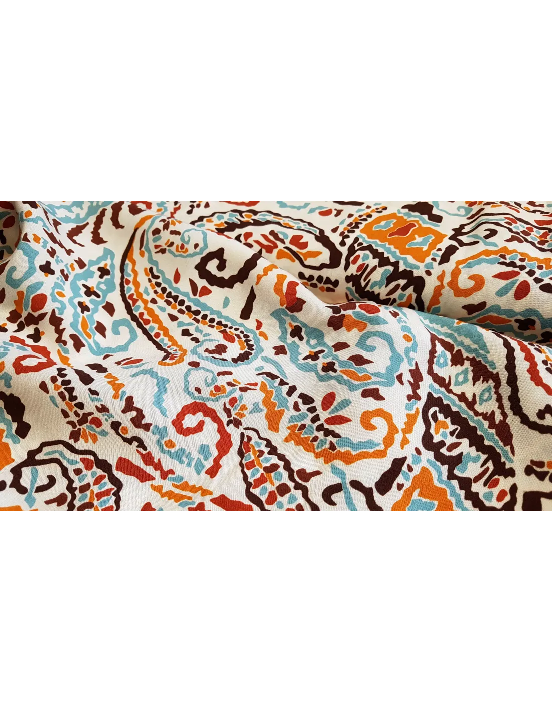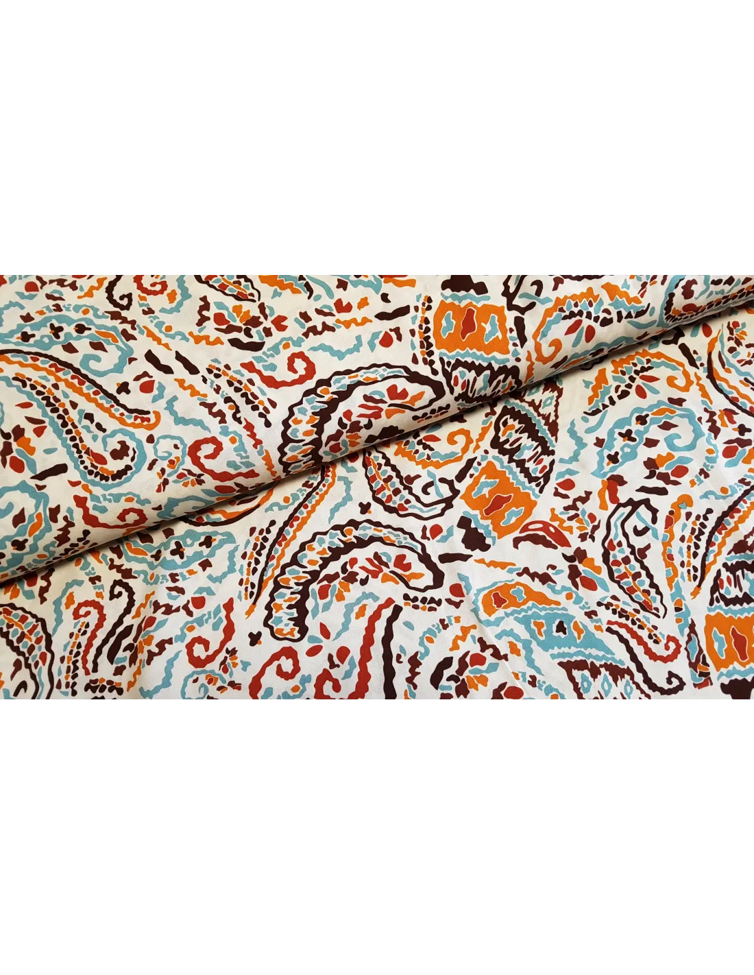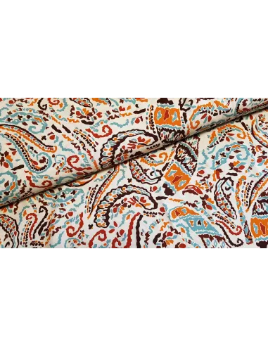 Tissu viscose, imprimé motifs psychédéliques sur fond écru. Parfait pour une robe, un pantalon d'été, une chemise...
