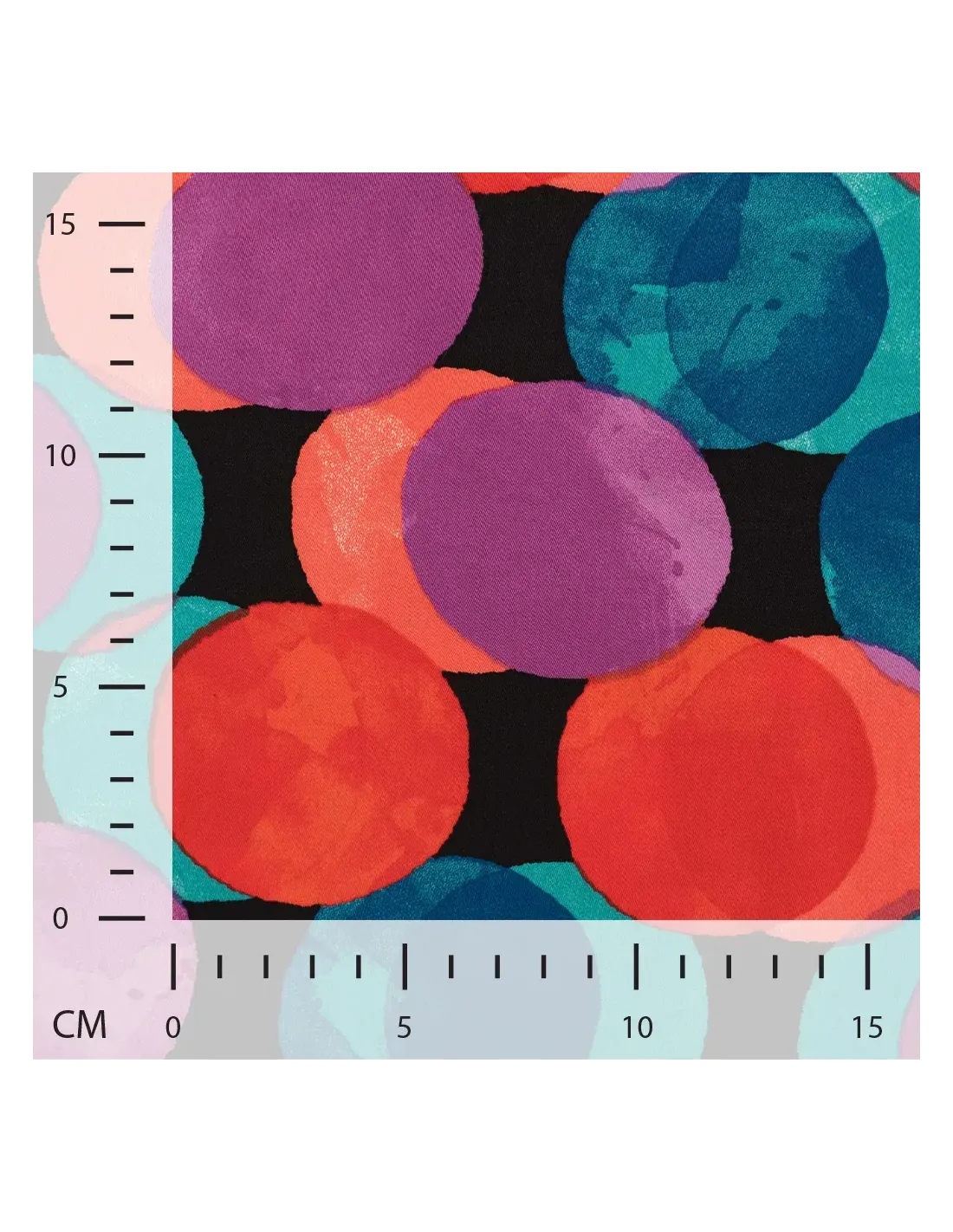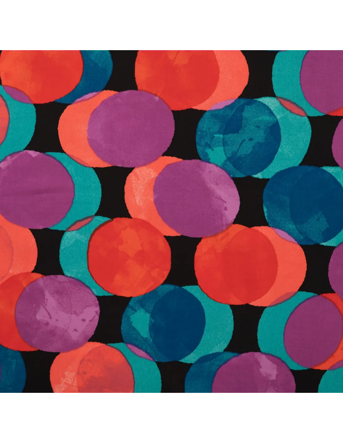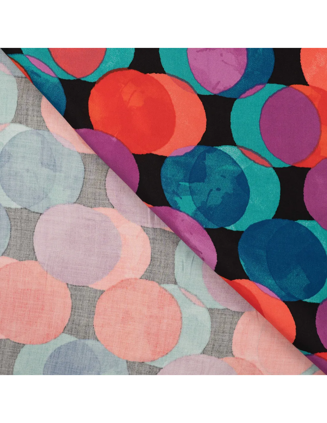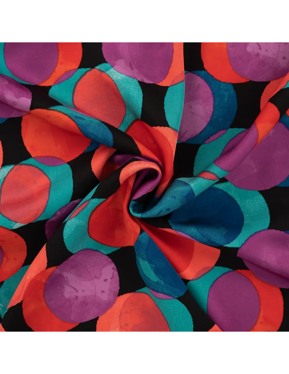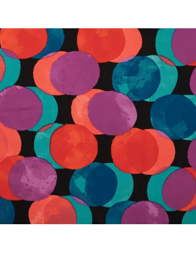 Satin de viscose imprimé ronds colorés. Parfait pour un haut, ou une robe.