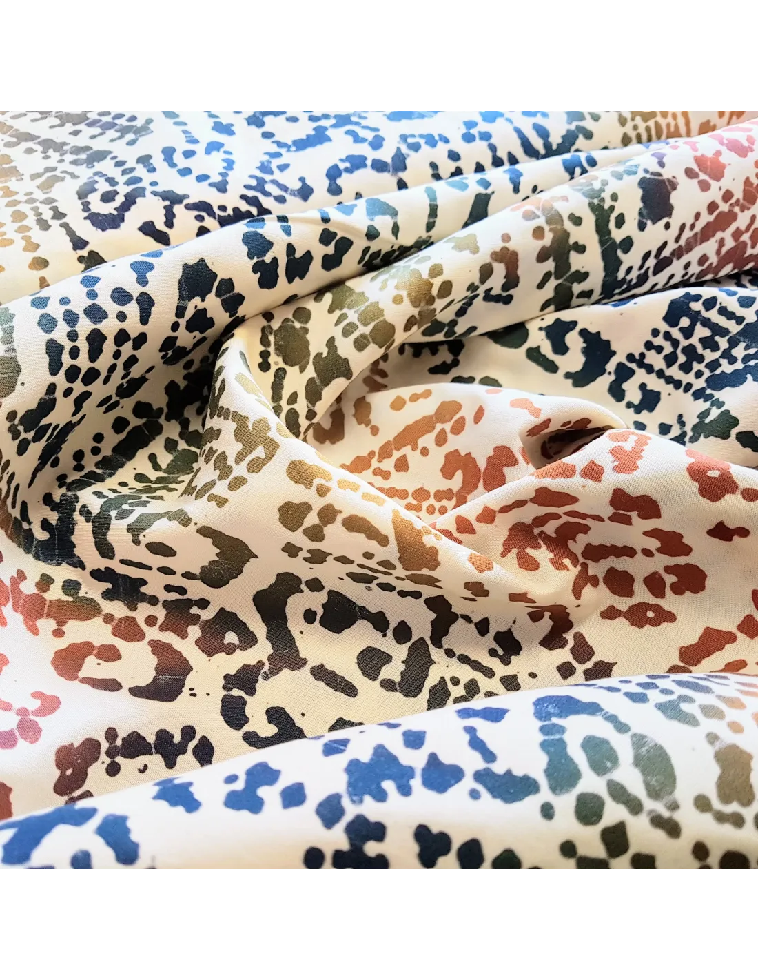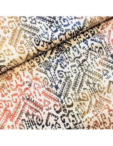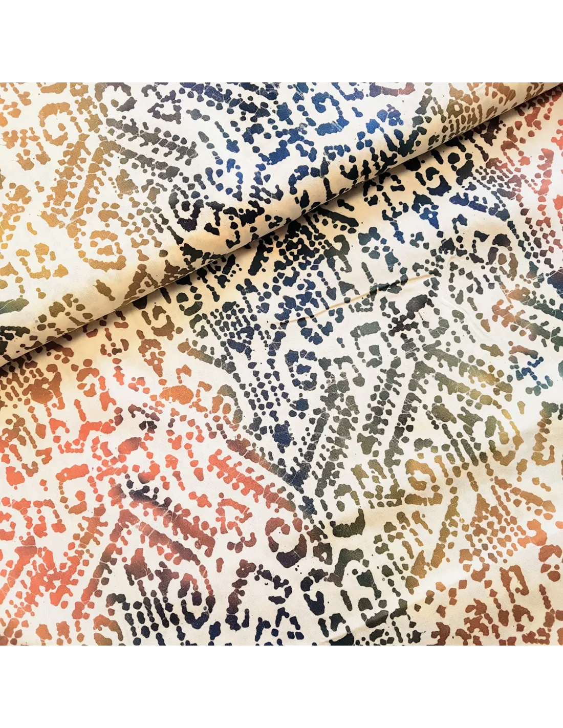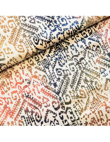 Batik viscose dans les tons chauds. Parfait pour un haut, ou une robe.
