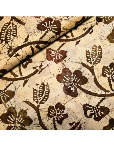 Ce tissu batik viscose est une véritable invitation à la créativité. Ses nuances chaudes et naturelles d'ocre, obtenues grâce à la technique traditionnelle du batik, apportent une touche d'authenticité et de raffinement à vos projets de couture. Sa fluidité et sa douceur, caractéristiques de la viscose, en font un tissu agréable à porter et facile à travailler.