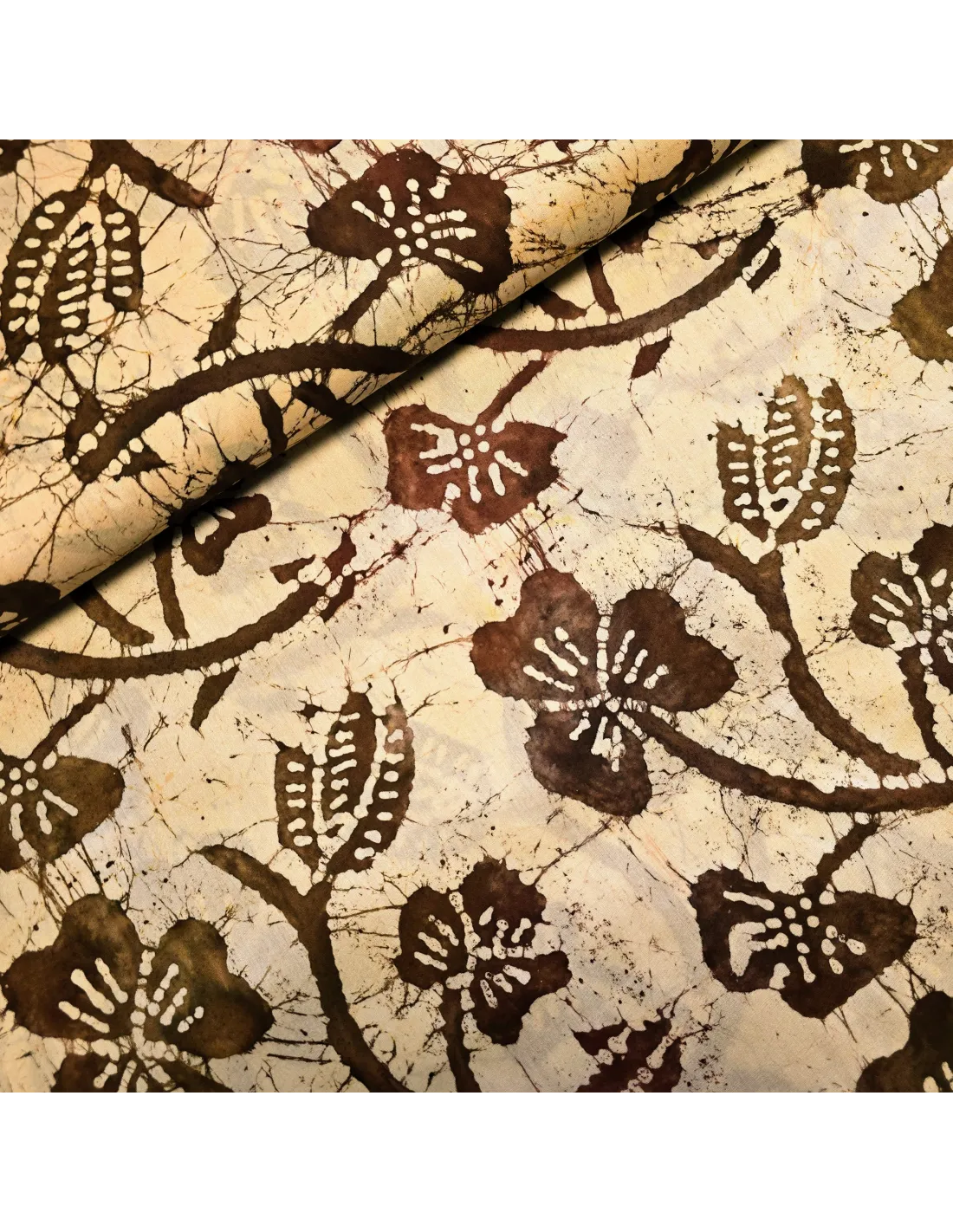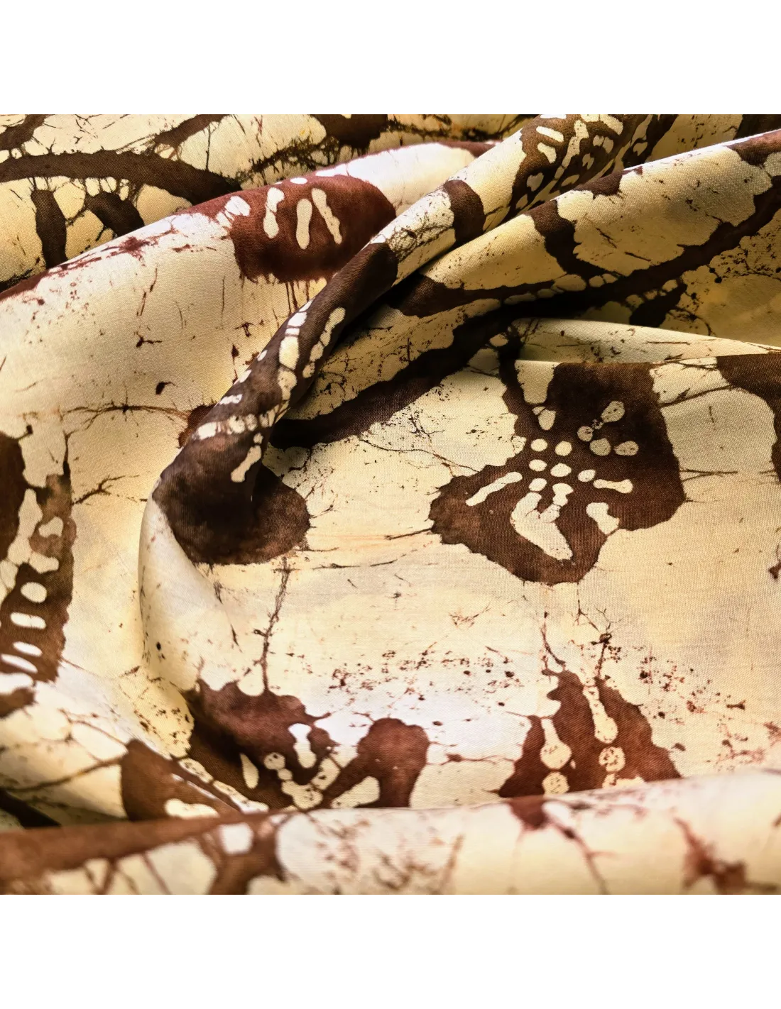 Ce tissu batik viscose dans les tons ocre est un choix parfait pour ceux qui recherchent un tissu à la fois esthétique, confortable et polyvalent, avec une touche d'originalité.
