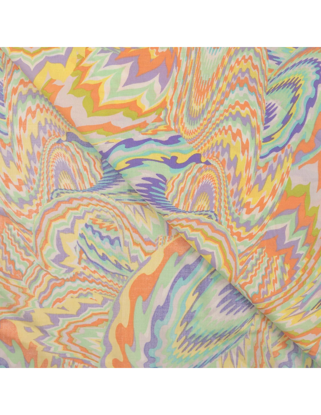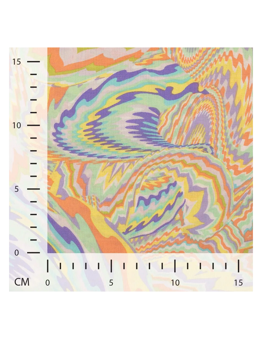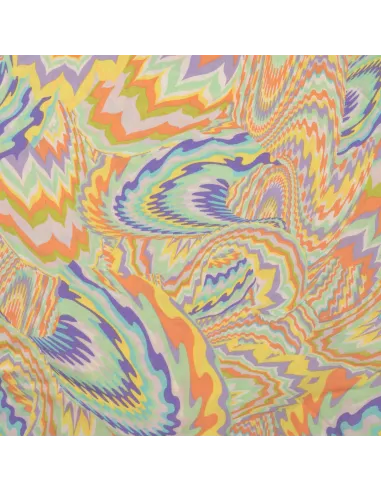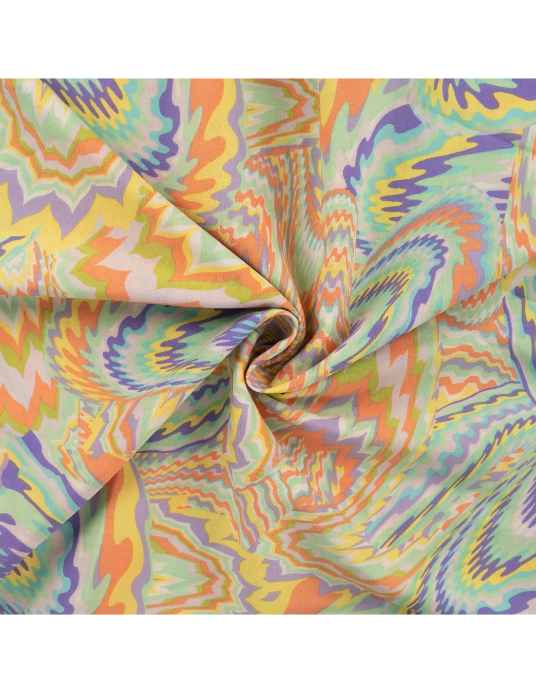 Coton viscose imprimé, motifs psychédéliques, mauve