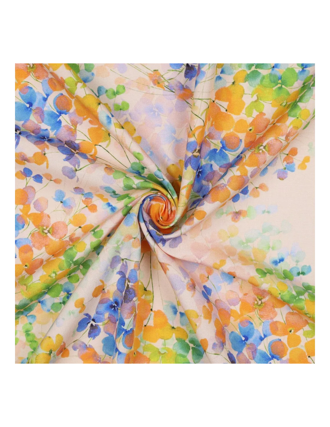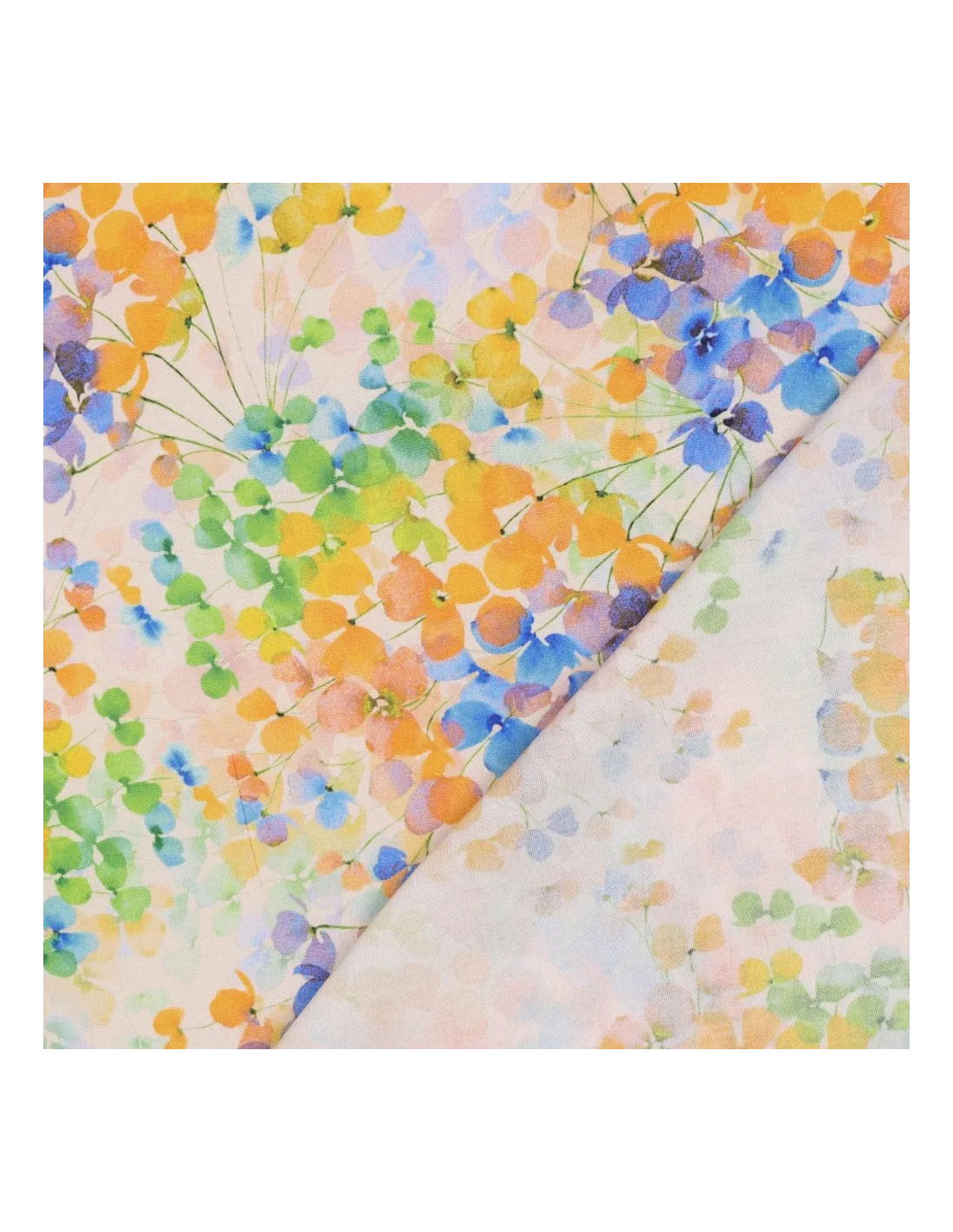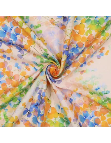 Adoptez la viscose imprimée feuilles vertes & orange, un tissu au motif rafraîchissant et coloré. Sa fluidité et sa légèreté en font le choix parfait pour des créations qui respirent la joie de vivre et la nature.