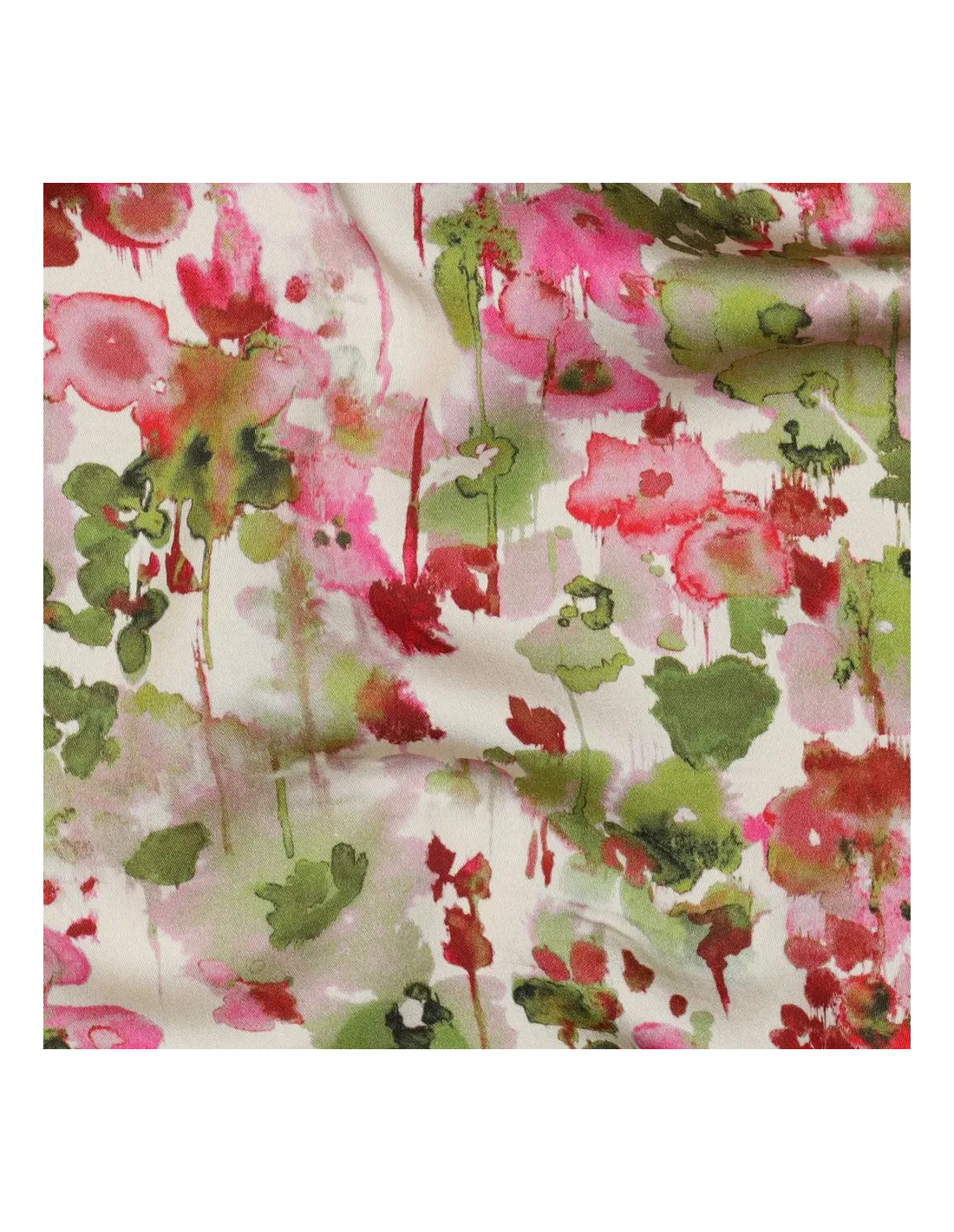 Tissu Satin de Viscose - "Jardin Aquarellé"