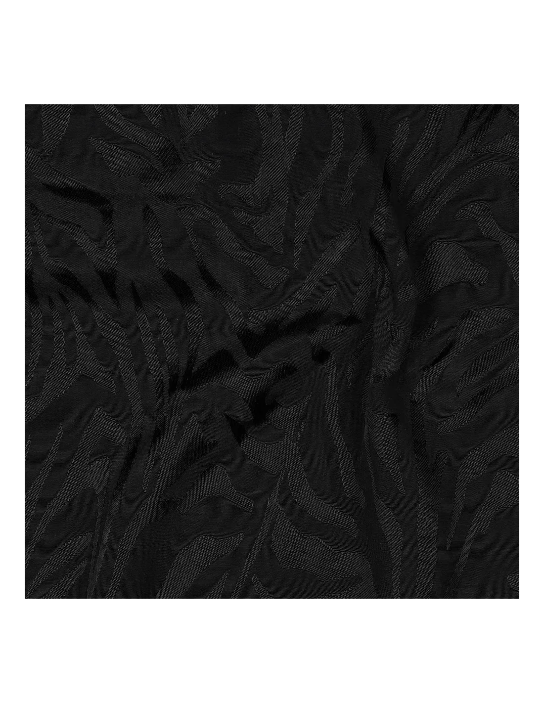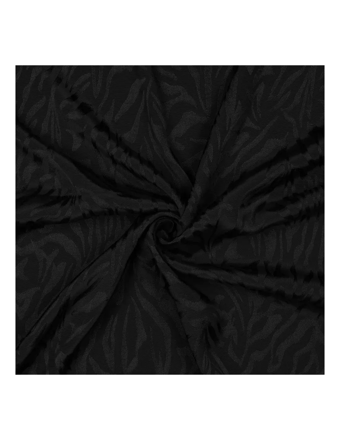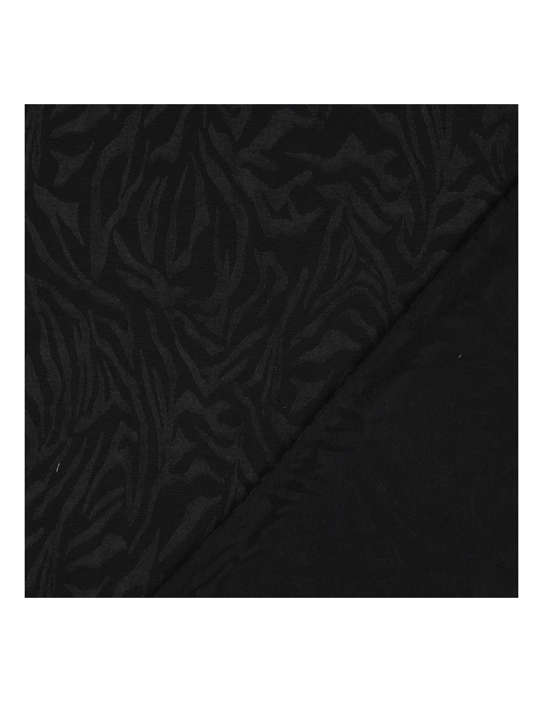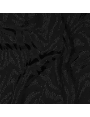 Découvrez notre jacquard de viscose qui allie le raffinement du noir à un motif animalier discret et sophistiqué. Le motif zèbre, tissé directement dans la matière, se révèle par un jeu de textures et de brillance subtile sur un fond noir uni. Ce design intemporel apporte une touche d'élégance et de caractère à toutes vos créations.