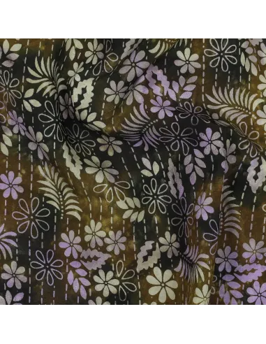 Voyagez à travers vos créations avec cette viscose de haute qualité au style batik inimitable. Ce tissu marie la légèreté d'une maille vaporeuse à un motif végétal riche, idéal pour des pièces de caractère à la fois élégantes et décontractées.