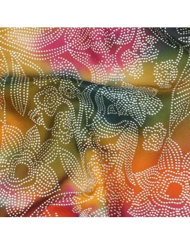 Laissez-vous séduire par l'énergie créative de cette viscose de haute qualité. Mariant des motifs botaniques élégants à un fond aux nuances travaillées, ce tissu est une véritable invitation à l'évasion et à la confection de pièces uniques et solaires.
