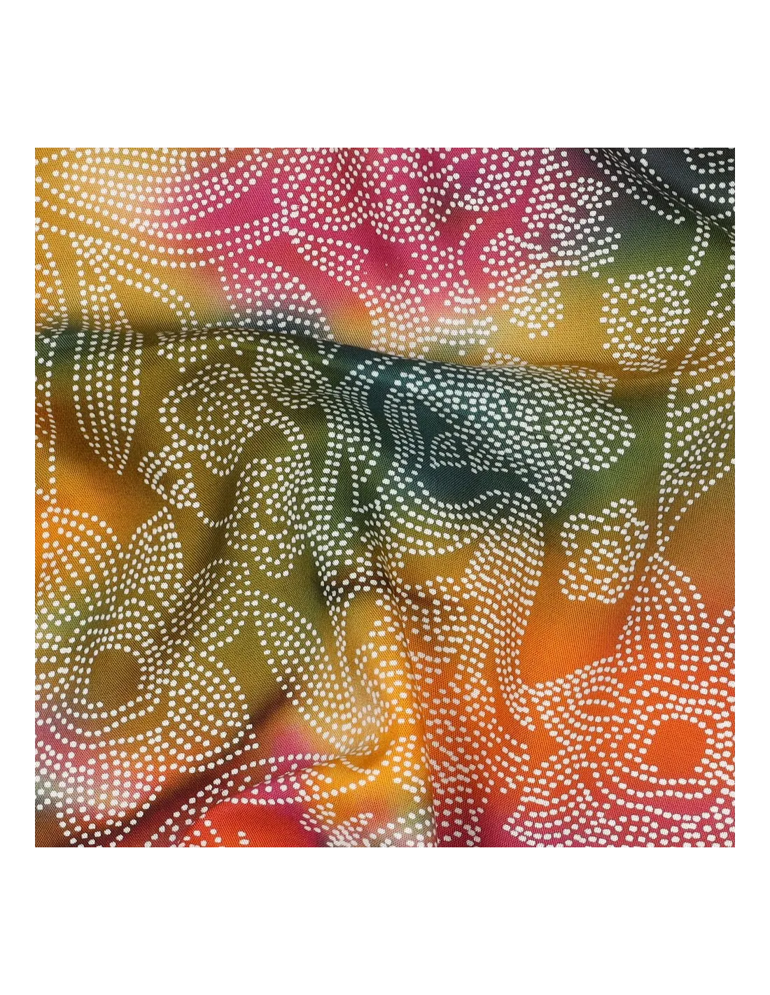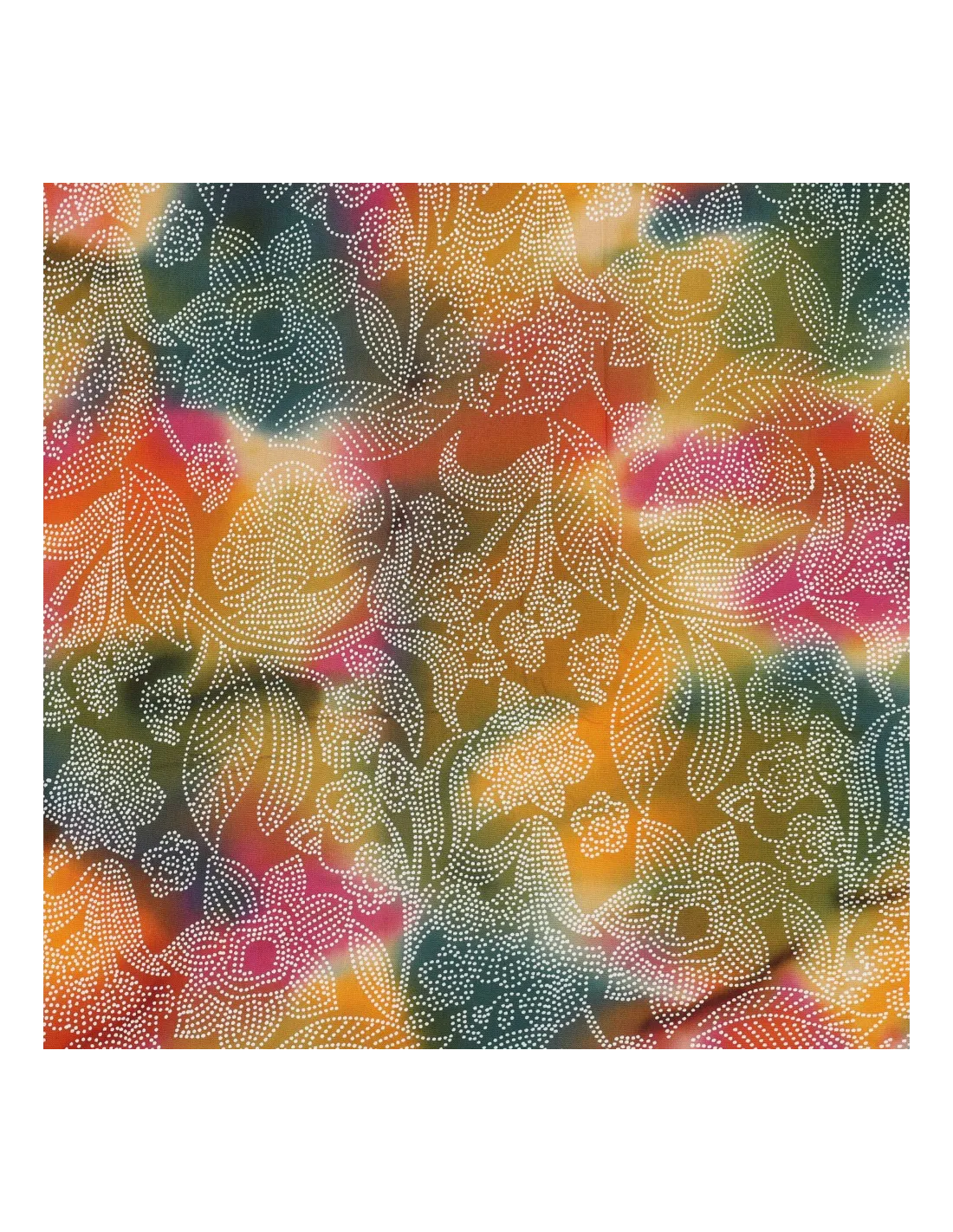 🌿 Viscose Esprit Batik – Feuilles Stylisées sur Fond Tie & Dye