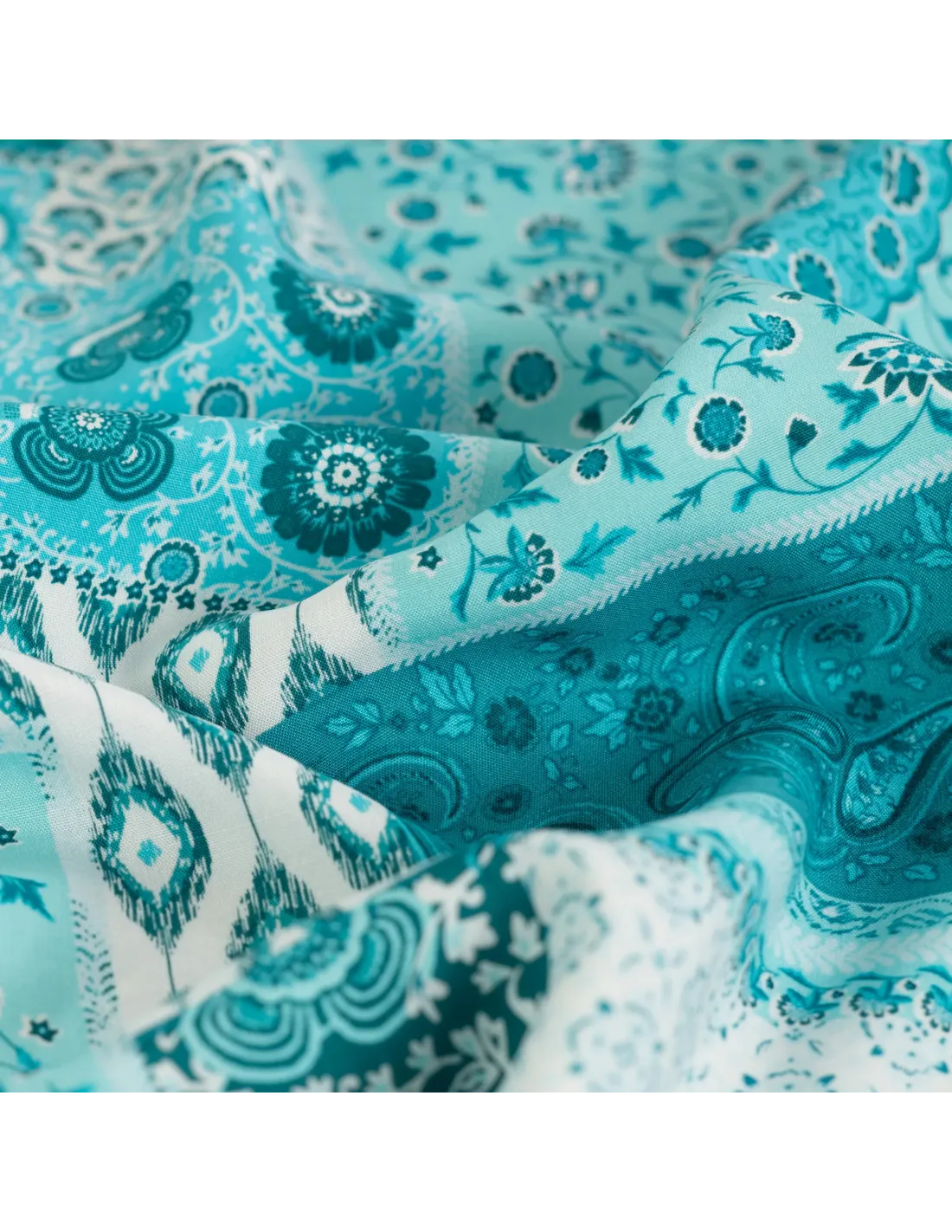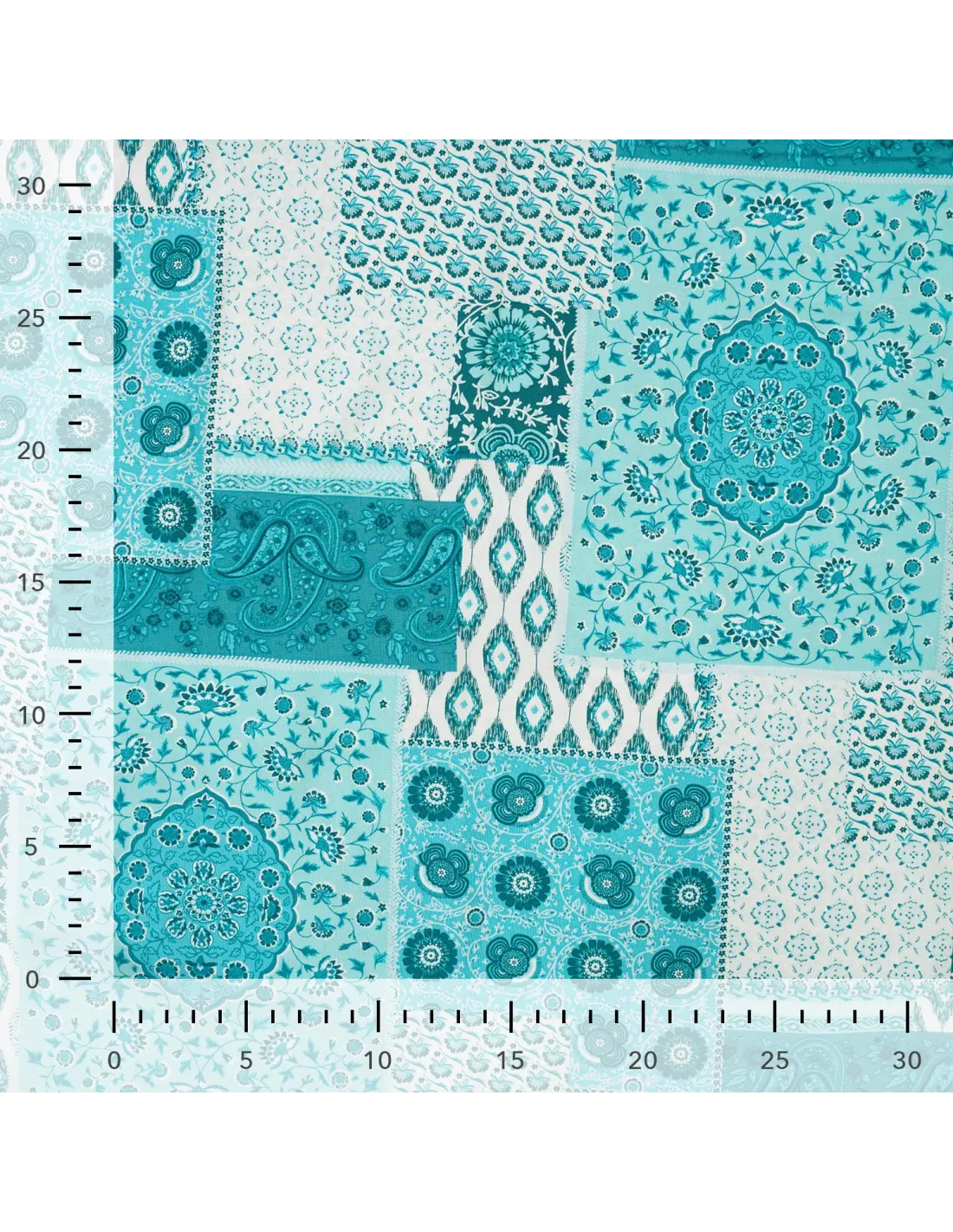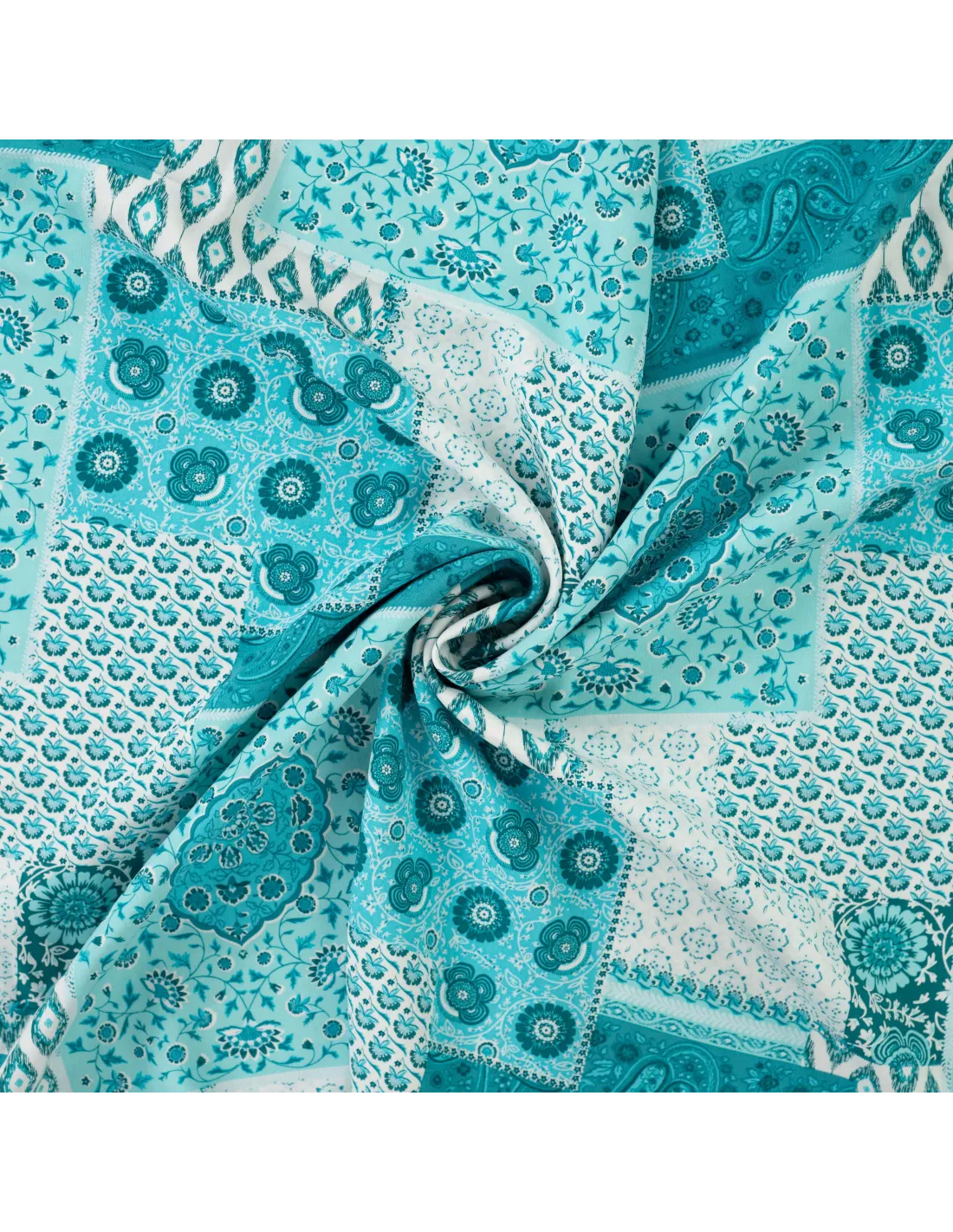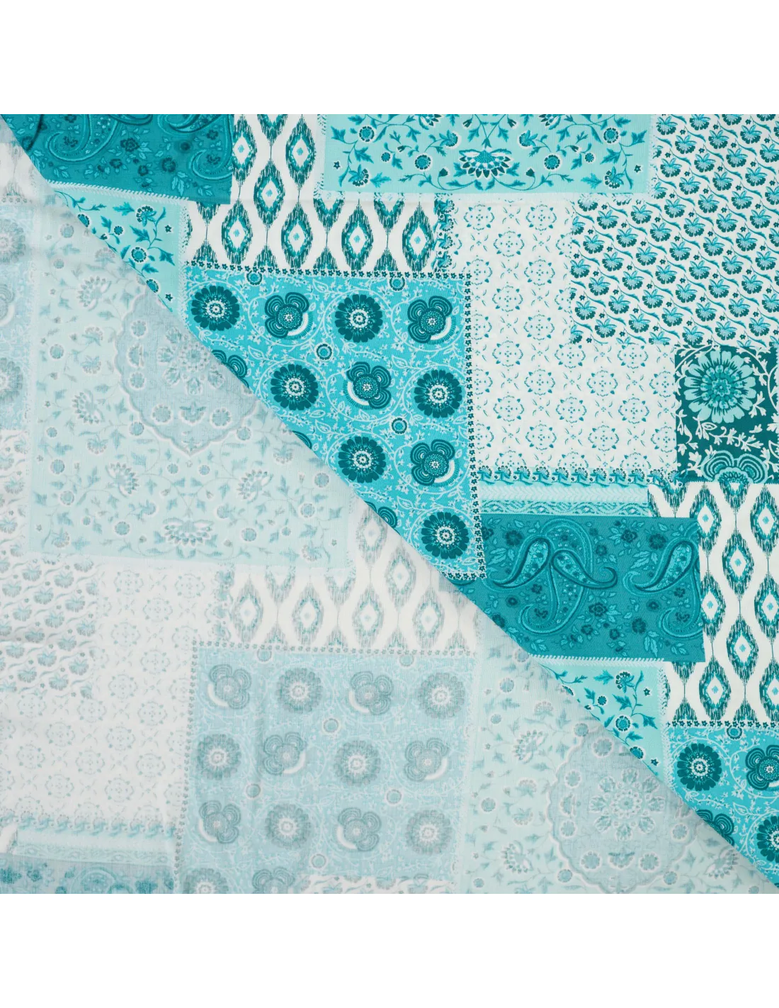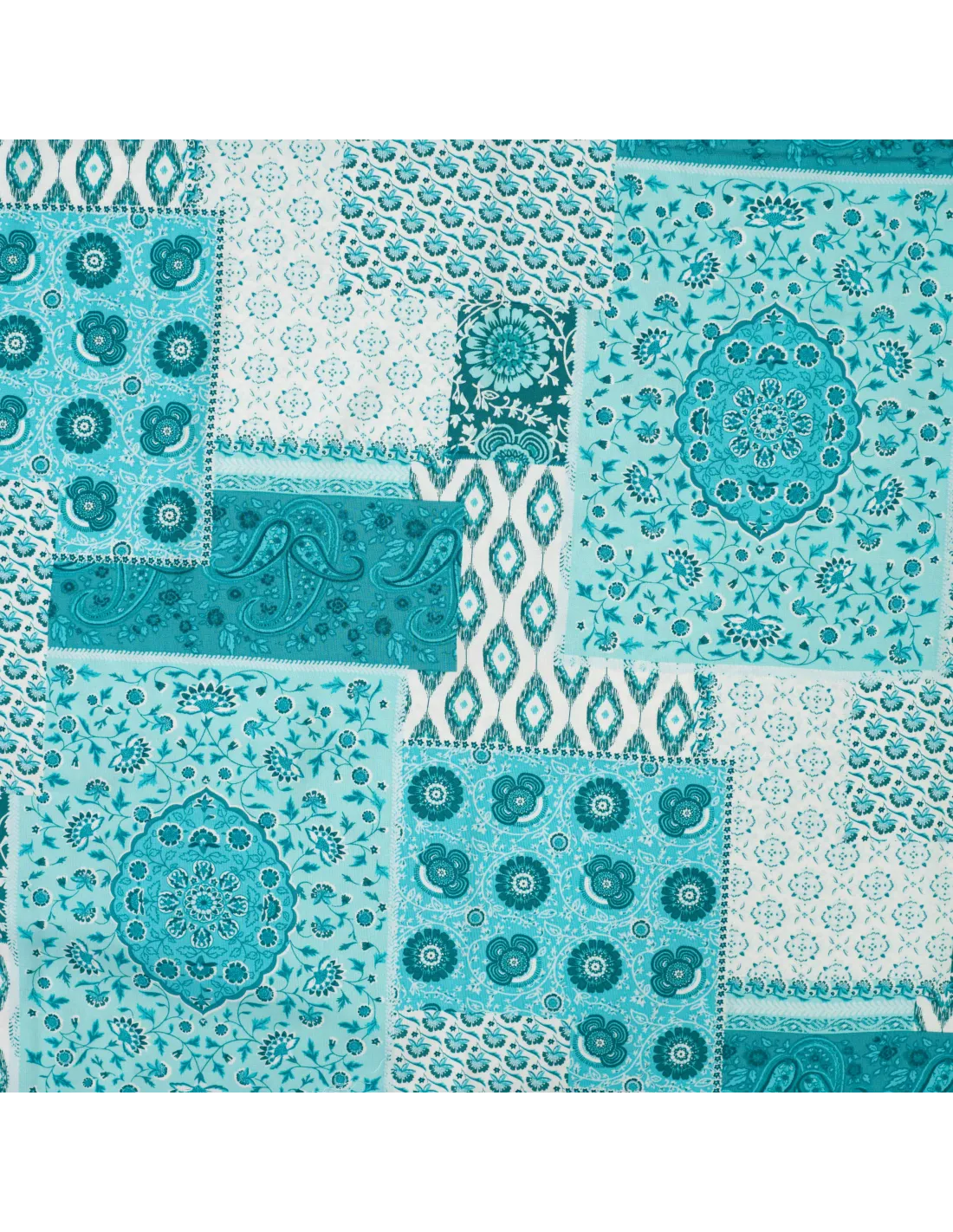 ✨ Viscose Fluide – Patchwork Bohème Bleu Pétrole