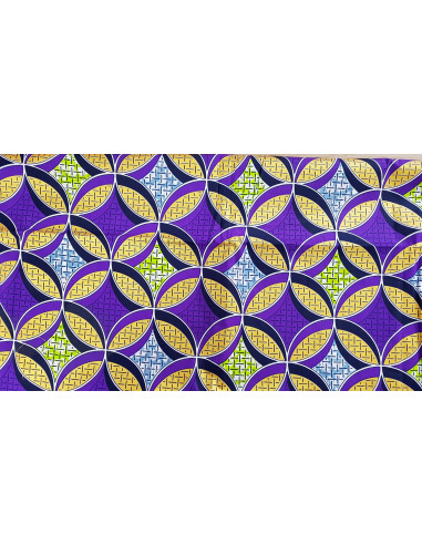 Superbe tissu wax d'une belle qualité avec de jolis motifs dorés sur fond violet. Ce tissu au subtil mélange de couleurs est idéal pour la confection de vêtements, accessoires...