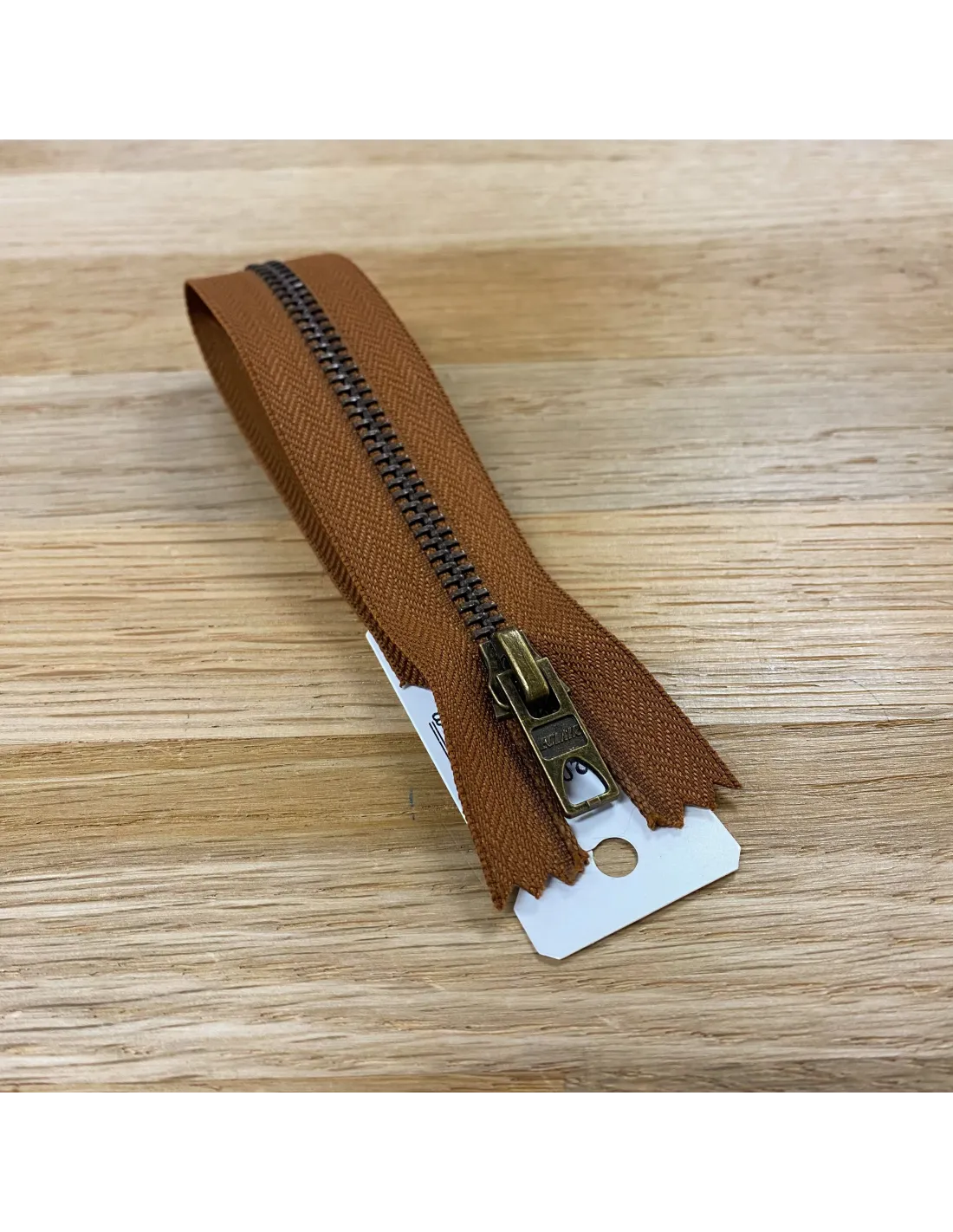 Fermeture Eclair Z14,Métal, marron moyen, 18cm