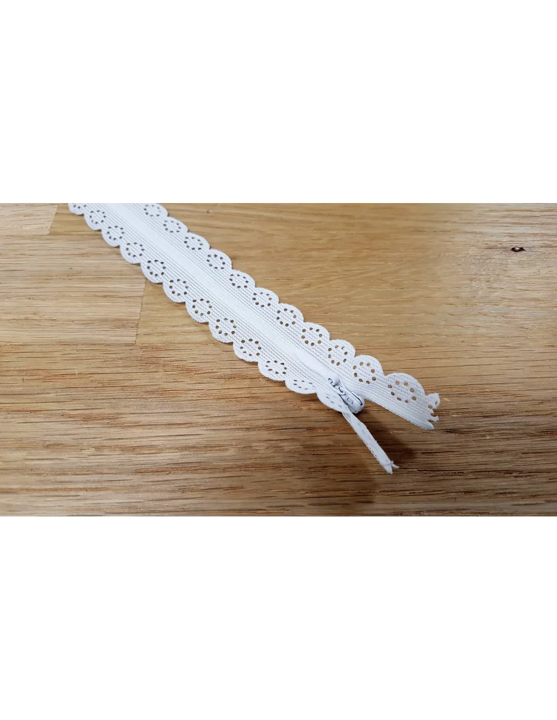 Cousues en apparentes, les fermetures en dentelle sont un élément décoratif original et élégant.