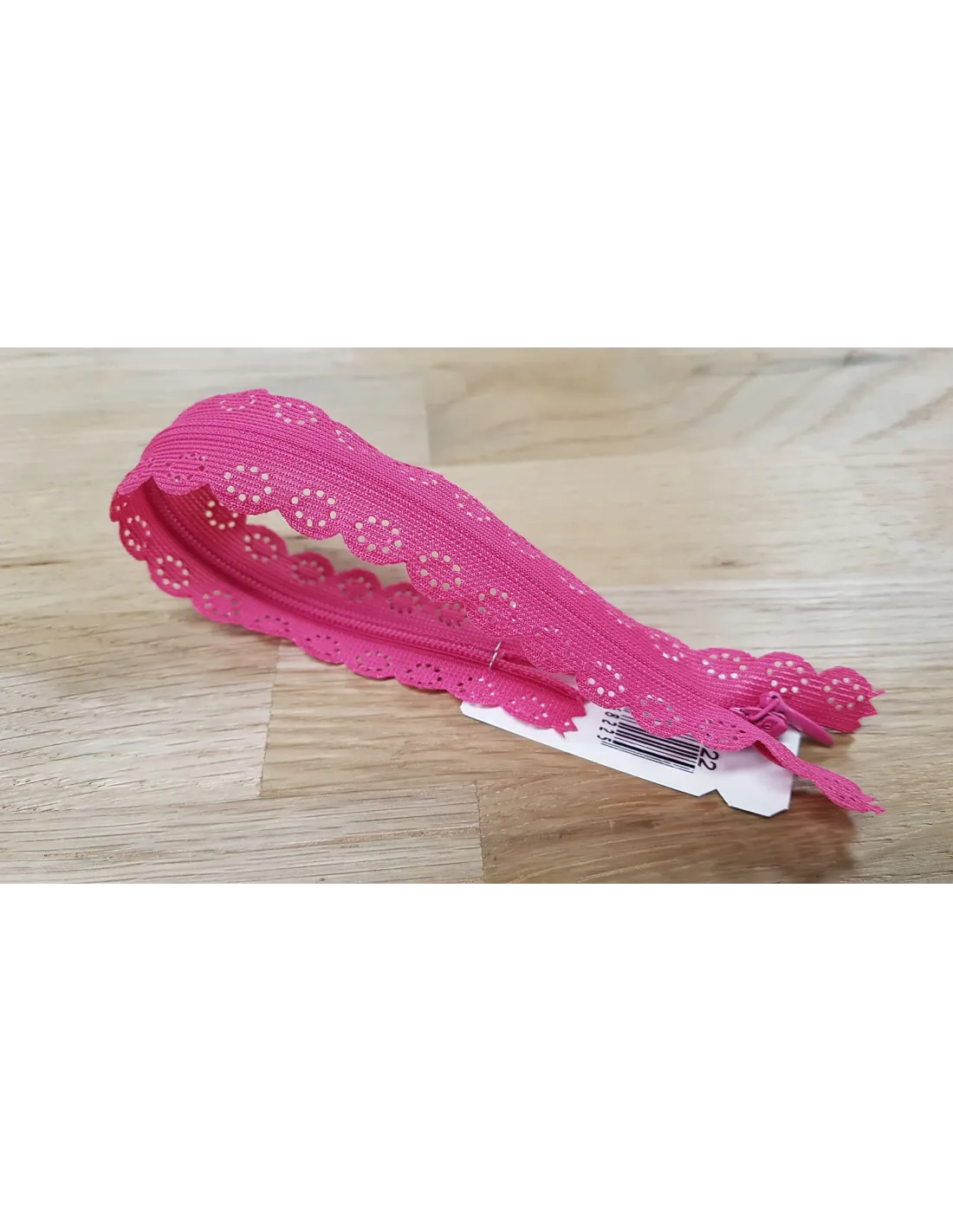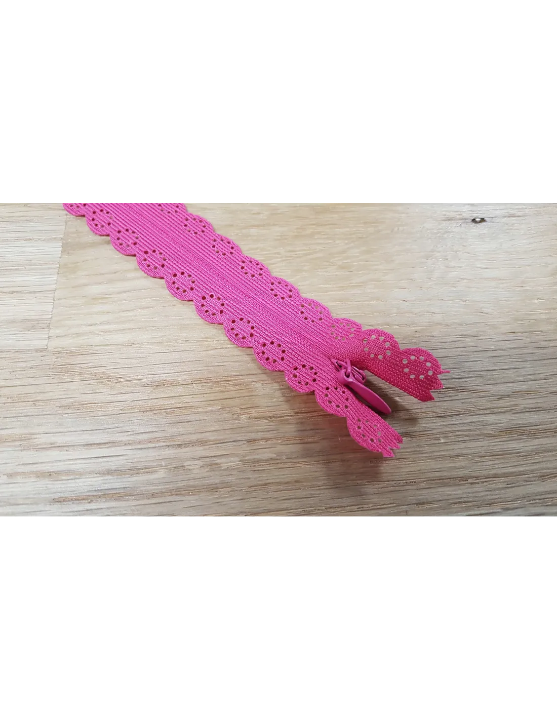 Fermeture Eclair Z82, Nylon invisible dentelle, rose vif, 22cm